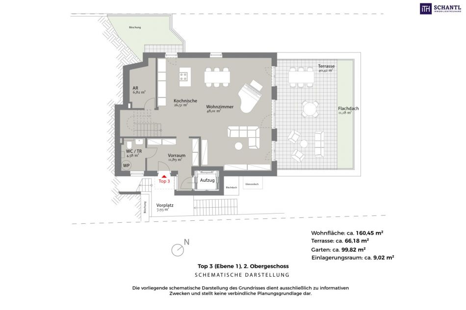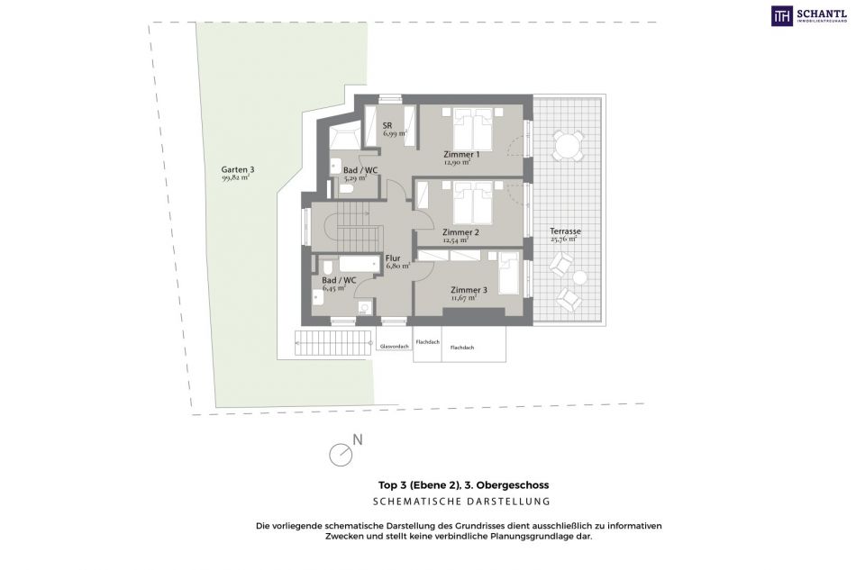 (ca. 25,7 m²) liegt in Nordost-Ausrichtung – ideal für entspannte Stunden.