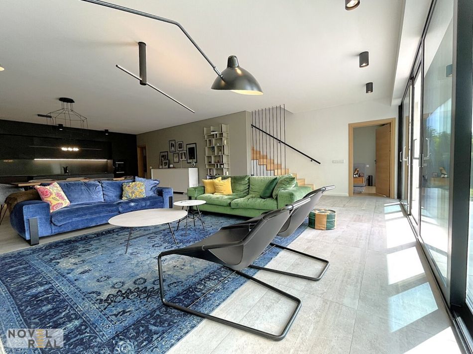 Das exquisite Anwesen erstreckt sich über drei architektonisch meisterhaft gestaltete Wohnetagen und bietet auf jeder Ebene ein Höchstmaß an Wohnkomfort und Raffinesse. Dank der sanften Hanglage des Grundstücks präsentiert sich selbst das Untergeschoss als vollwertige Wohnebene mit großzügigen, lichtdurchfluteten Räumen. Große Fensterflächen und ein direkter Zugang zum liebevoll angelegten Garten schaffen eine nahtlose Verbindung zwischen Innen- und Außenraum – ein seltener Luxus, der das Wohnerlebnis auf dieser Ebene besonders macht.