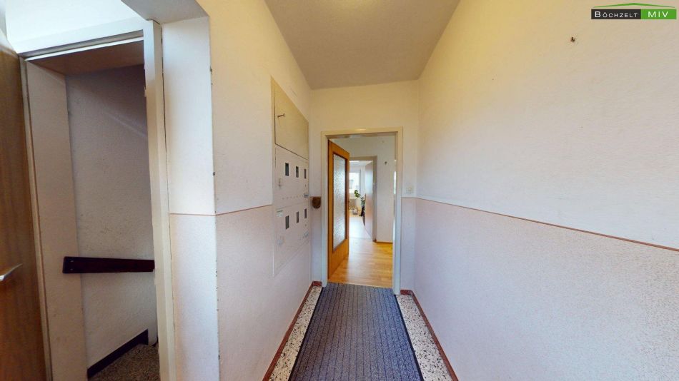 Die Fenster wurden im Zuge der Sanierungsmaßnahmen vor rund 25 bis 30 Jahren erneuert und sind überwiegend als zweifach verglaste Kunststofffenster mit Wärmeschutzverglasung ausgeführt. Großteils ist eine außenliegende Beschattung (Rollläden bzw. Jalousien) vorhanden, die zusätzlichen Sonnen- und Sichtschutz bietet. Im Bereich der Elektroinstallation wurde im Jahr 2024 ein neuer Elektro-Verteiler eingebaut. Die Leitungsverläufe selbst entsprechen in weiten Teilen dem ursprünglichen Bestand. Für jede der beiden Wohneinheiten ist ein eigener Stromzähler vorhanden, was eine getrennte Abrechnung ermöglicht. Das Dach wurde in den Jahren 2023 und 2024 teilweise saniert, wobei Dachplatten und Dachrinnen abschnittsweise erneuert wurden. Die Innenausstattung umfasst überwiegend Parkett- und Laminatböden in den Wohn- und Schlafräumen (vereinzelt Teppichboden), Fliesen in Badezimmern, WC und Teilbereichen sowie Terrazzoböden im Stiegenhaus, die typisch für die Bauzeit sind und durch ihre Robustheit überzeugen.