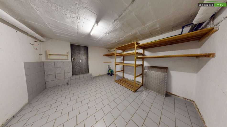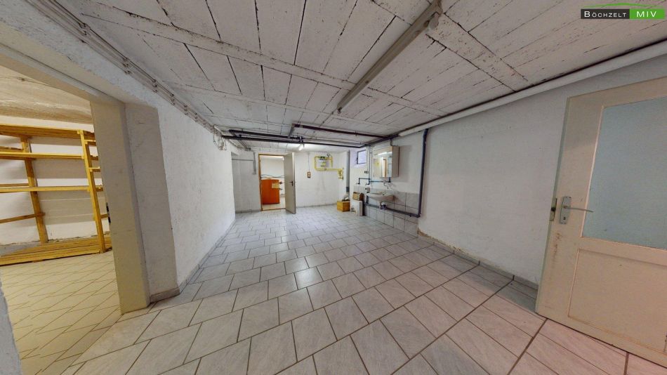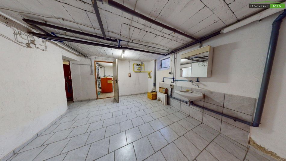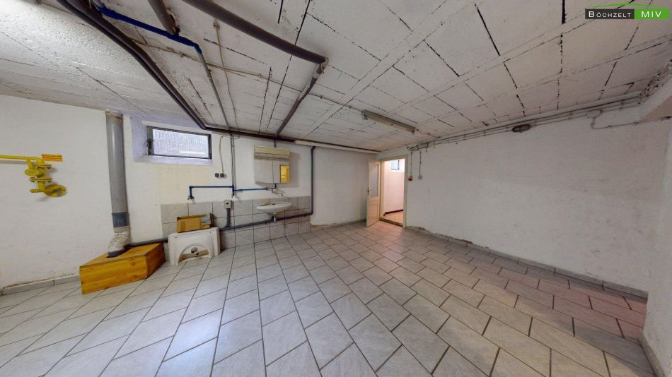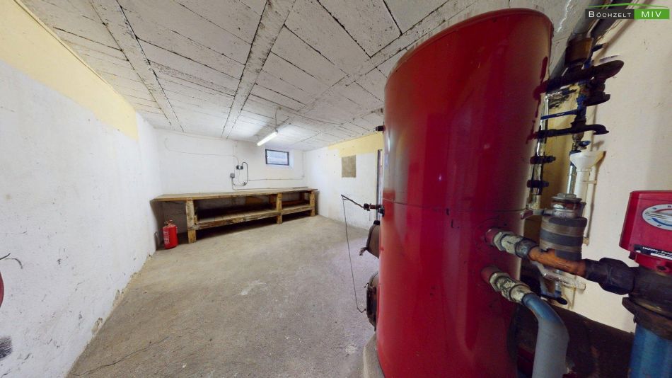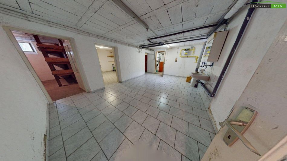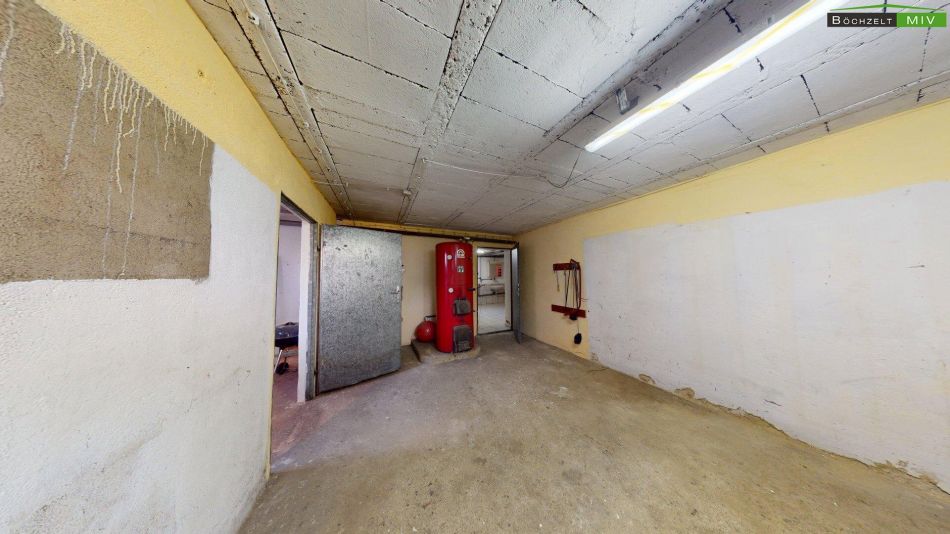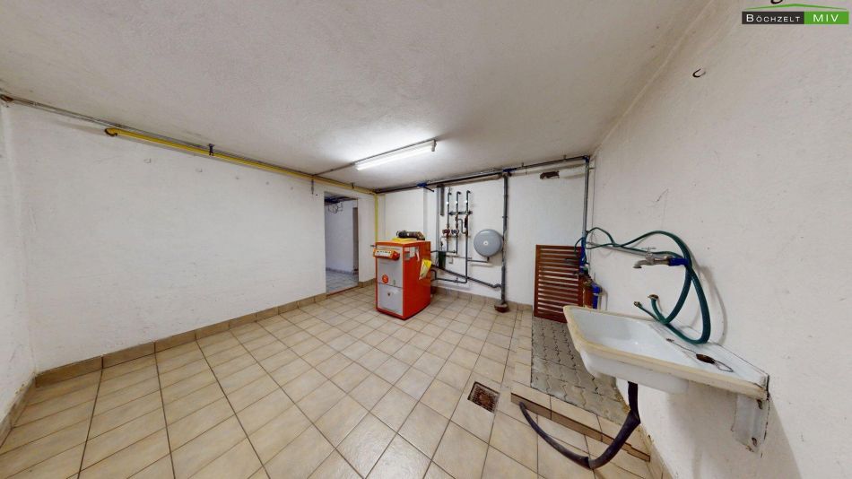In den letzten Jahrzehnten wurden zahlreiche Erhaltungs- und Sanierungsmaßnahmen gesetzt. Vor etwa 25 bis 30 Jahren erfolgte eine Erneuerung der Bäder, Böden und Fenster. Der Dachboden wurde mit etwa 12 cm Dämmung versehen. In den Jahren 2023 bis 2024 wurde das Dach teilweise saniert, wobei Dachplatten und Dachrinnen abschnittsweise erneuert wurden. Im Jahr 2024 wurde ein neuer Elektro-Verteiler eingebaut (ohne Neuverkabelung der Leitungen). Dadurch präsentiert sich die Liegenschaft technisch solide und bietet gleichzeitig noch genügend Spielraum für individuelle Modernisierungen im Innenbereich. Das Gebäude ist vollständig unterkellert. Im Keller befinden sich der Heizraum mit der Gas-Zentralheizungsanlage, mehrere großzügige Kellerräume, die sich gut als Lager- oder Vorratsräume eignen, eine geräumige Waschküche mit Fenster sowie eine Werkstatt, die sich bestens für Heimwerker und Bastler anbietet. Durch die Raumhöhen von rund 2,27 bis 2,30 Metern und die vorhandenen Fenster wirken die Kellerräume hell und gut nutzbar. Ein zentraler Flur verbindet alle Räume miteinander und führt in das Stiegenhaus, das ins Erd- und Obergeschoss weiterführt. Insgesamt steht im Kellergeschoss eine Nutzfläche von rund 99,6 m² zur Verfügung.