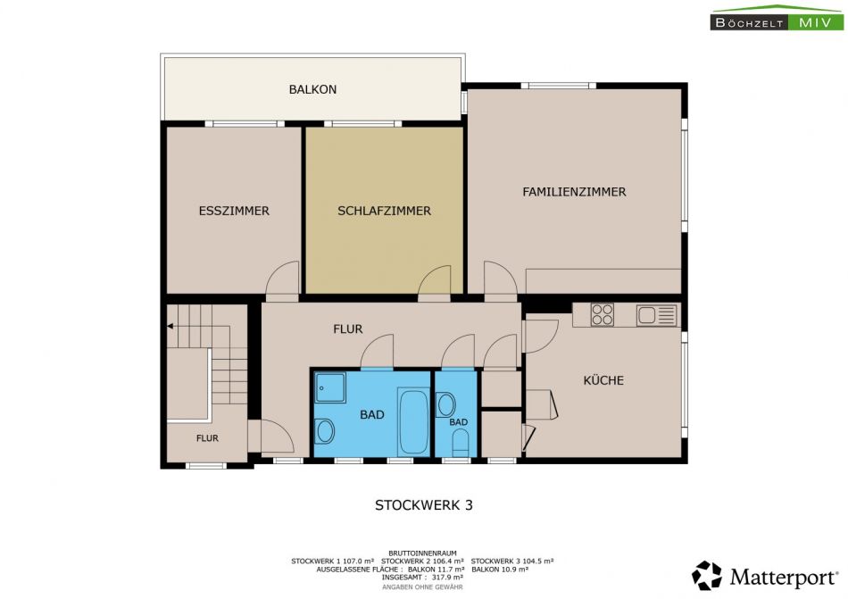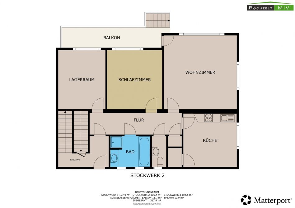 Je Wohnung: Wohnzimmer, Küche mit Speis, 2 Schlafzimmer, Bad, separates WC, Balkon