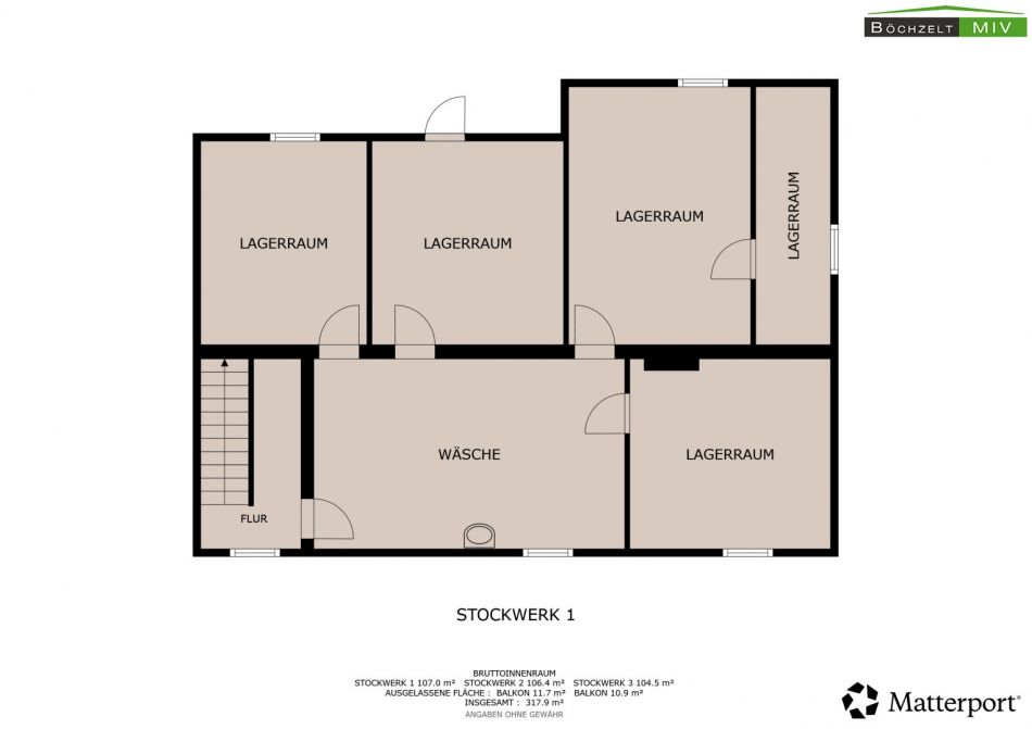 vollunterkellert: Heizraum, Waschküche, Lagerräume, Werkstatt