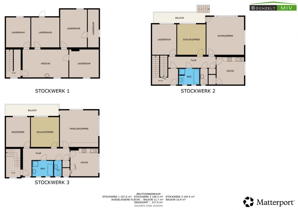 Ca. 195 m² Wohnfläche gesamt, je ca. 95–100 m²