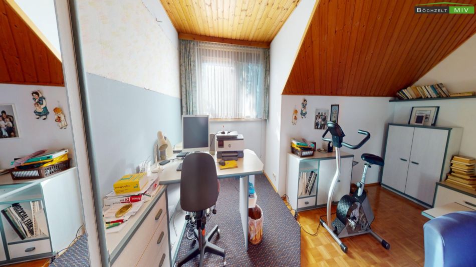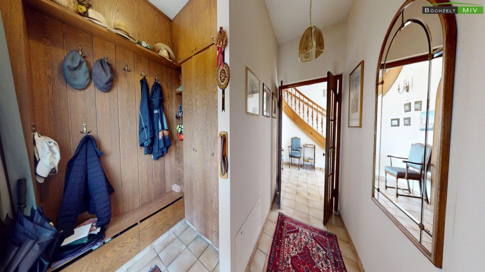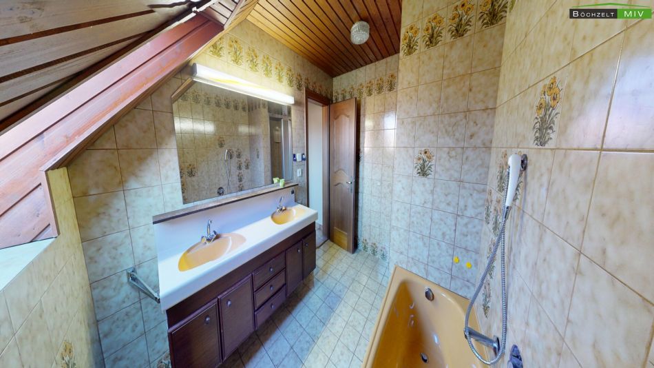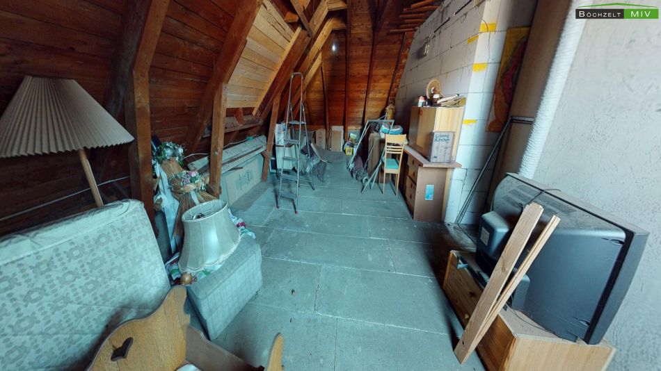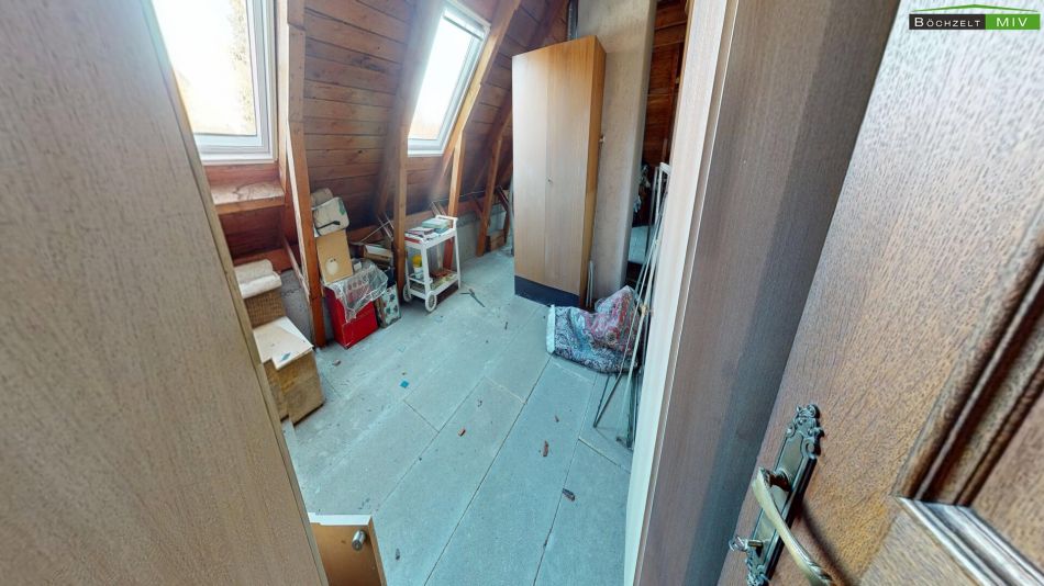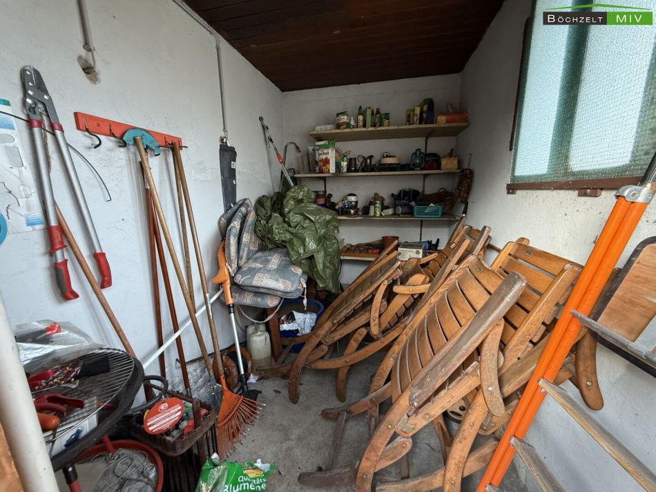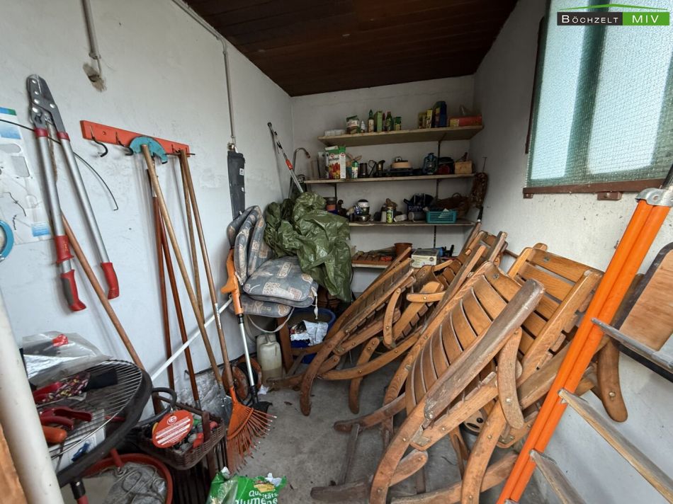 Abgerundet wird das Angebot durch eine großzügige Doppelgarage (ca. 44 m²), einen Geräteschuppen für Ihre Gartengeräte sowie enorme Staumöglichkeiten im unausgebauten Dachboden (ca. 100 m²).