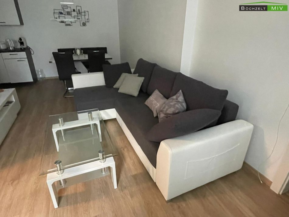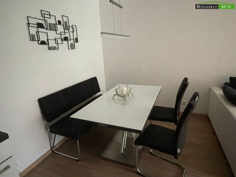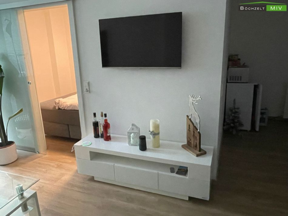Die Aufteilung ist wie folgt: Vorraum, möblierte Küche mit Wohn-/Essbereich, Schlafzimmer und Badezimmer/WC.