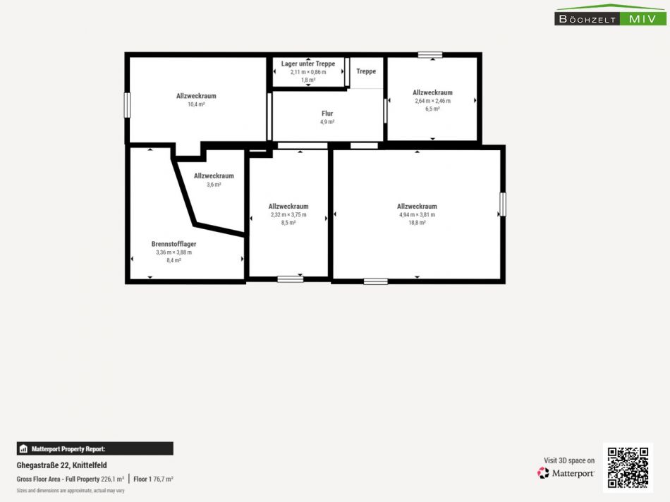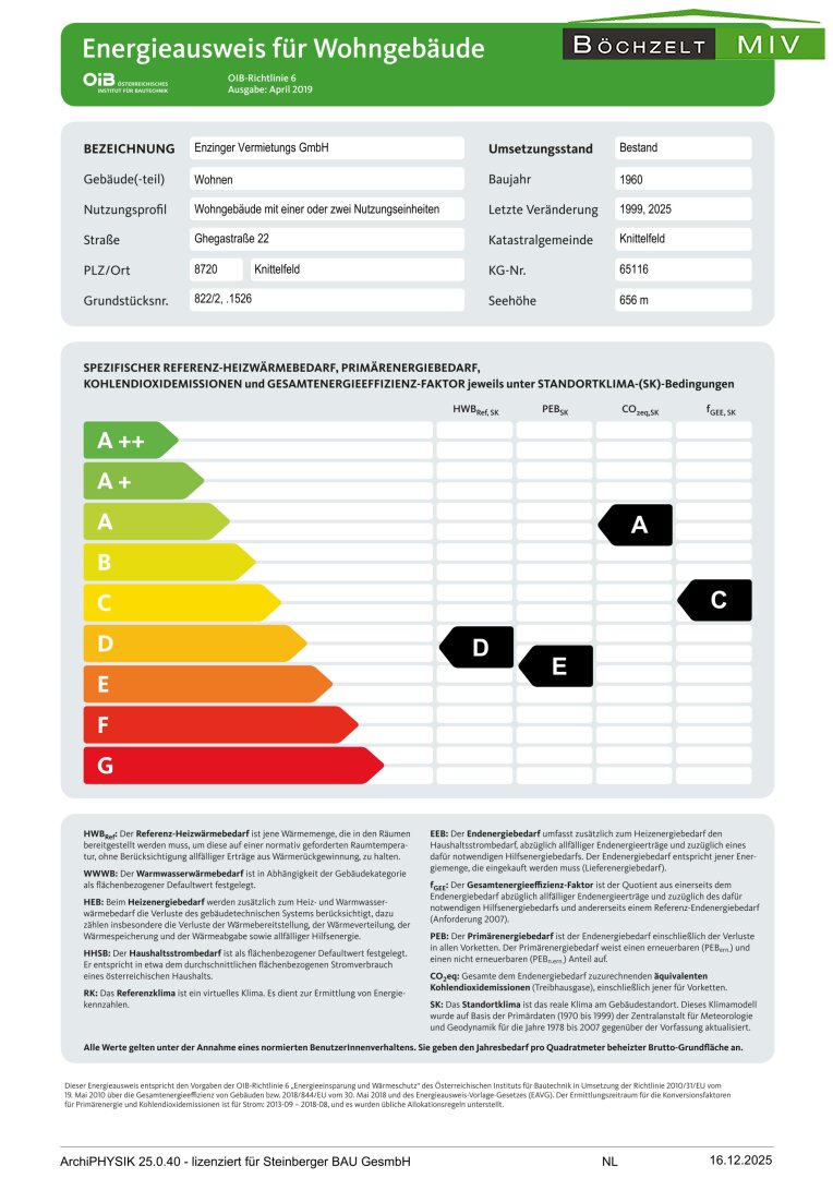 Zum Verkauf gelangt ein erst kürzlich saniertes Einfamilienhaus in zentraler Lage Knittelfelds. Neben dem großen Grundstück besticht diese Liegenschaft vor allem auch durch die vielen Räumlichkeiten und Nebengebäude und den guten Erhaltungs- und Sanierungszustand.Das Haus mit seinen knapp 133 m² Wohnnutzfläche und ca. 64 m² Kellerfläche verteilt sich auf 3 Geschosse. Ursprünglich wurde das Haus, sowie das Nebengebäude 1960 errichtet und 2025 umfassend saniert. Der asphaltierte Außenbereich bietet Platz für weitere 2 - 3 Fahrzeuge zum Parken, teilweise unter Dach im Carport nördlich des Hauses. Anschließend an das Carport ist ein Abstellraum bzw. kleine Garage vorhanden mit ca. 12,24 m². Situiert im hinteren Bereich der Liegenschaft gibt es noch eine Gartenhütte im Ausmaß von ca. 7,18 m².