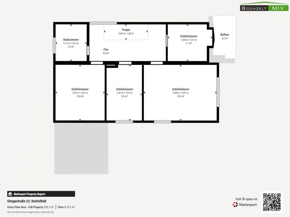 Das Kellergeschoss mit knapp 63,73 m² lässt sich von einer Innenstiege erreichen. Dort befindet sich neben diversen Lager- und Kellerräumlichkeiten auch der ehemalige Heizraum mit dahinterliegendem Brennstofflagerraum, sowie im Hauptbereich des Kellers auch die derzeitige Haustechnik (Fernwärmeübernahmestation, Warmwaserboiler, sowie neuer Elektroverteiler). Das Erdgeschoss mit seinen knapp 64,98 m² besteht aus dem Windfang, einem Vorraum, einem sanierten Badezimmer samt Dusche und WC, einem geräumigen Wohnzimmer von dem man auf die knapp 12,8 m² Terrasse gelangt, sowie einem geräumigen Esszimmer mit dahinterliegender, halboffener Küche. Hinter der Küche im Außenbereich besteht ein kleiner, ca. 5,5 m² großer Balkon, der allerdings nur von außen begangen werden kann. Im Dachgeschoss mit seinen knapp 67,36 m², befinden sich insgesamt 4 Schlafzimmer, ein Vorraum, sowie ein weiteres saniertes Badezimmer mit moderner Walk-In-Dusche und WC. Vom südseitigen Schlafzimmer gelangt man auf einen weiteren, ca. 4,56 m² großen Balkon.