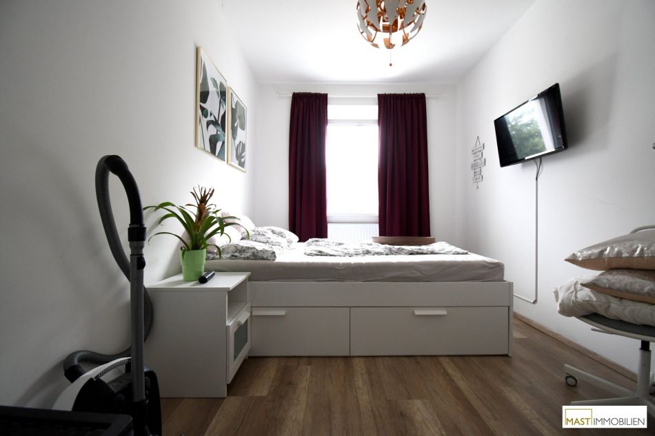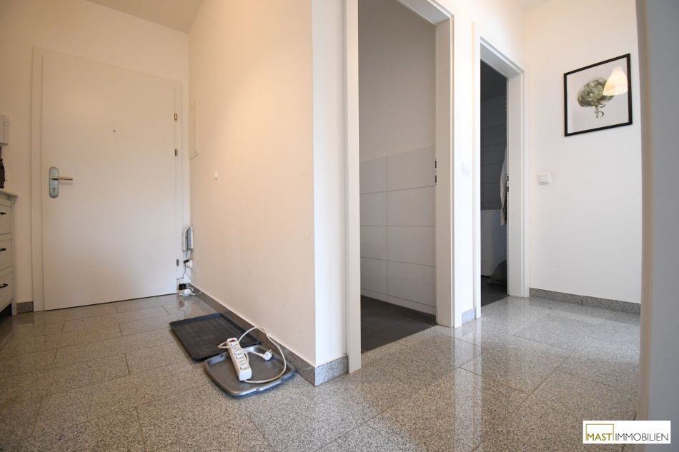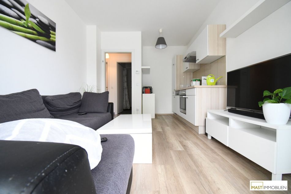 Nach Eintritt in die Wohnung gelangen Sie in ein großzügiges Vorzimmer mit ausreichend Platz für Ihre Garderobe. Wohnküche, Schlafzimmer und die sanitären Einrichtungen sind zentral vom Vorzimmer aus begehbar. Das Badezimmer verfügt über eine ebenerdige Dusche mit Handwaschbecken & WM-Anschluss. Die Wohnküche ist mit einer Küche inkl. Geräte ausgestattet und verfügt über einen Balkonzugang. Das Schlafzimmer ist (laut Grundriss im Anhang ersichtlich) optimal geschnitten und bietet Ihnen Platz für Ihr Bett & Kleiderschrank. Das WC ist natürlich separat begehbar.