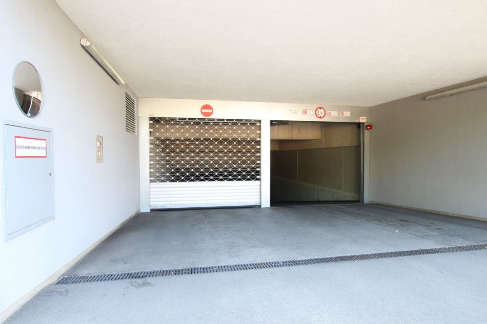 Provisionsfrei: Die Garage verfügt über eine bequeme Zufahrt/Abfahrt und 2 Fußgänger-Ausgänge (Hauptplatz-Seite bzw. Bahnhof) Korneuburg.