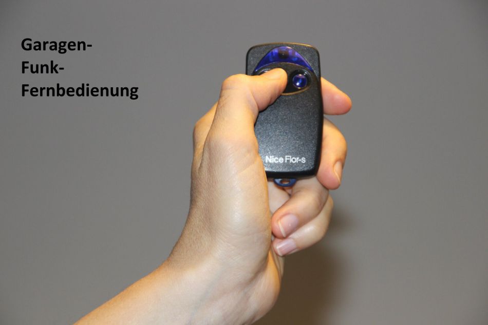 Das Garagentor öffnet per Handfunksender oder Schlüssel (jeweils 1 Stück in der Miete enthalten).
