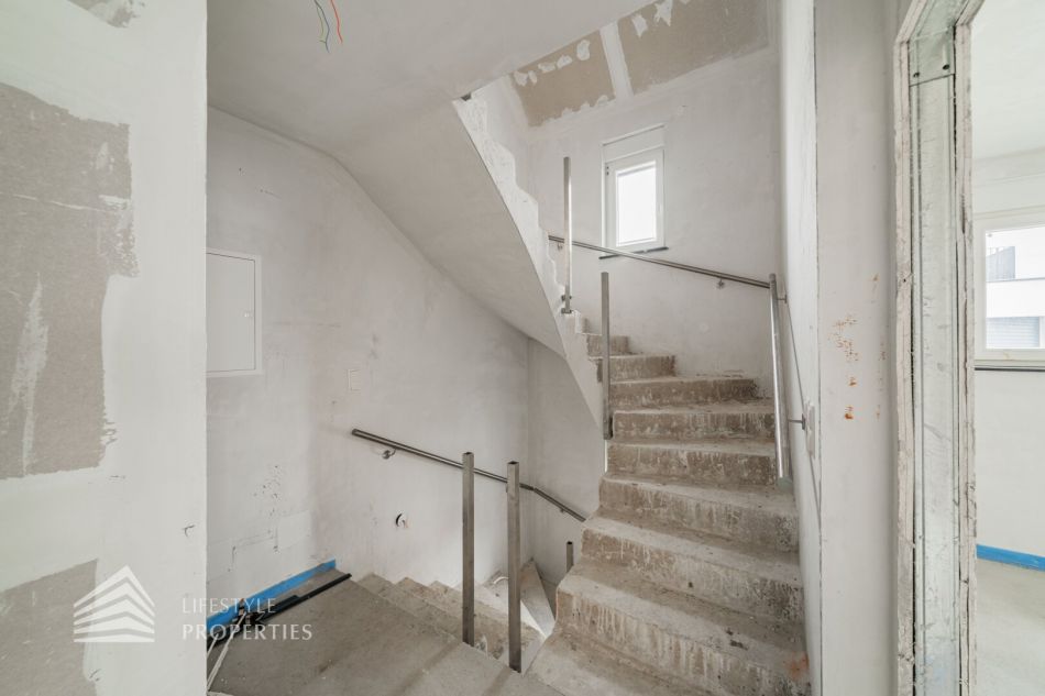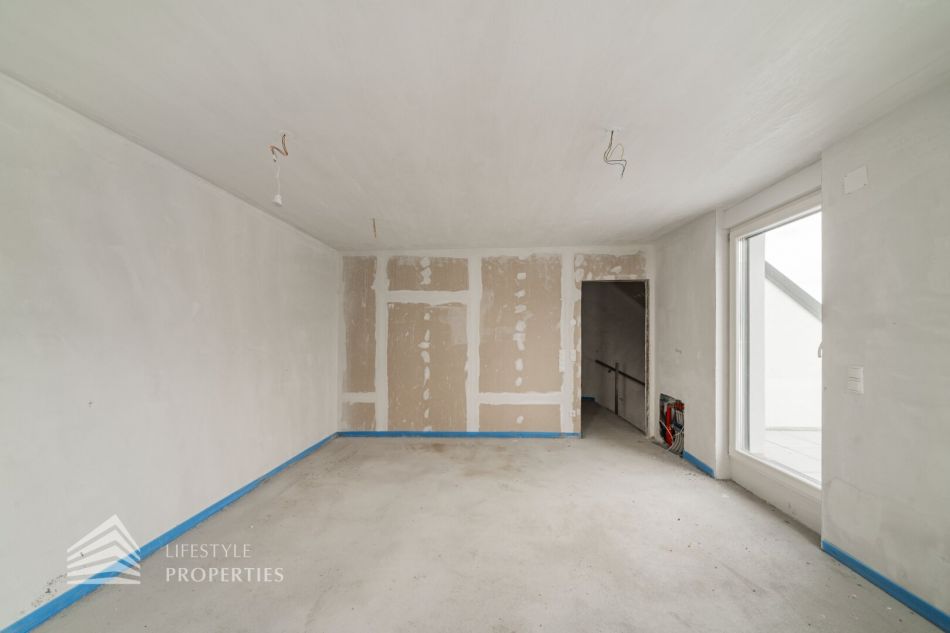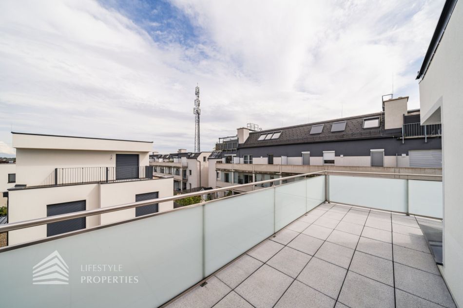 Das Dachgeschoss präsentiert sich als wahres Juwel des Hauses. Hier befindet sich das großzügige Master-Schlafzimmer, das absolute Privatsphäre und Raum für ein gemütliches Schlafzimmerensemble bietet. Ein weiteres Badezimmer mit WC ist auf dieser Ebene vorhanden und ermöglicht zusätzlichen Komfort. Das Highlight des Hauses ist zweifellos die großartige Dachterrasse mit ca.19 m², welche Sie direkt vom Schlafzimmer aus erreichen. Diese Terrasse bietet einen atemberaubenden Ausblick und lädt dazu ein, die Umgebung zu genießen, frische Luft zu schnappen und Momente der Ruhe zu erleben.