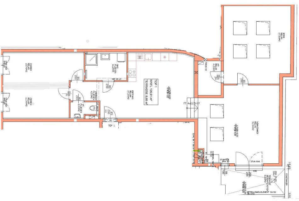 Top 1 befindet sich im Erdgeschoss und bietet auf ca. 126,61 m² Nutzfläche:
