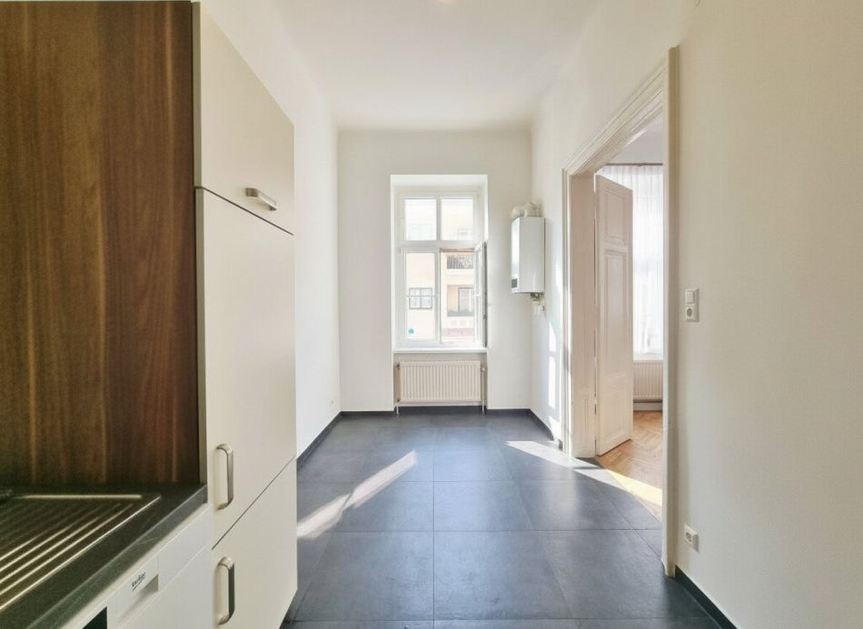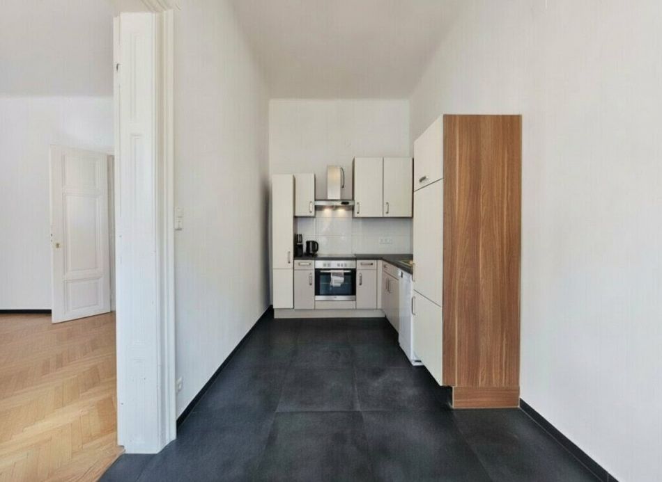 Ausstattung: Hohe Decken mit rund 3,10 Meter, Fischgrätparketten, Stilaltbau Flügeltüren, Kassettentüren und Zargen, Einbauküche