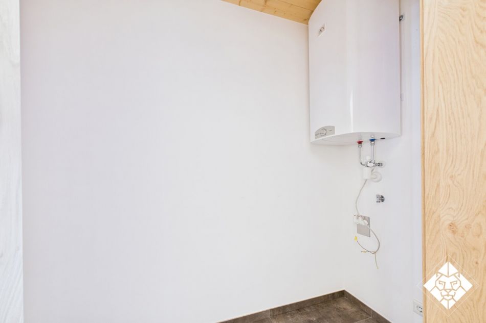 Das stilvolle Tageslichtbad schließt sich an die Garderobe an und überzeugt mit moderner Ausstattung: edle Fliesen, eine geräumige Dusche, ein eleganter Waschtisch und hochwertige Keramikelemente. Auch an den praktischen Abstellraum für Waschmaschine und Trockner wurde gedacht.