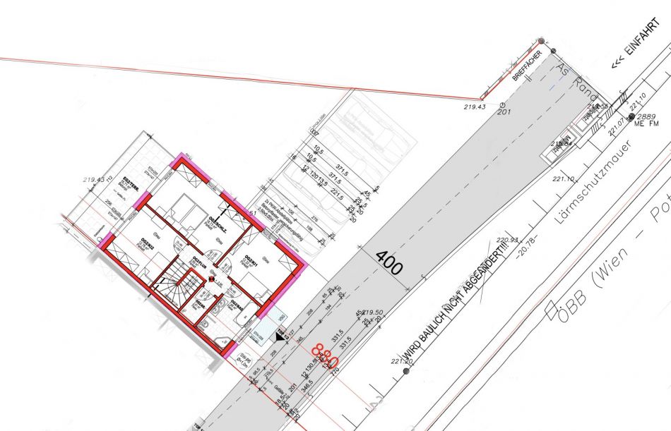 Direkt vor der Liegenschaft verläuft eine Bahnverbindung!
