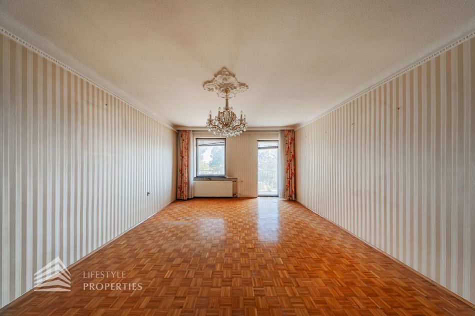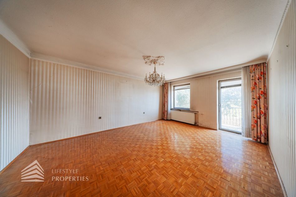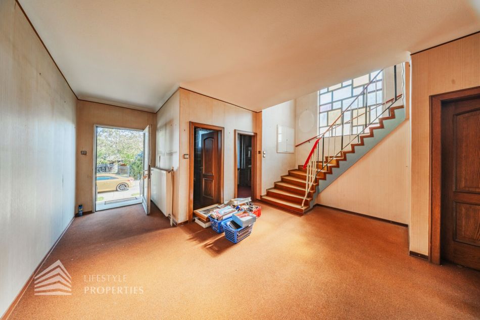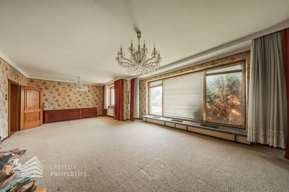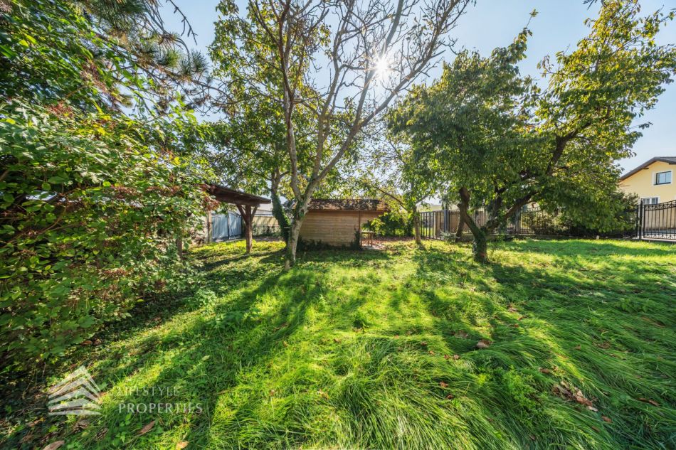 Das traumhafte Haus aus dem Jahr 1970 besticht durch seine nicht alltägliche Architektur und erstklassige Bauqualität. Schon damals ein echtes Herzeigeobjekt, präsentiert es sich dank der hochwertigen Materialien und fachgerechten Ausführung heute noch in nahezu neuwertigem Zustand. Das Grundstück umfasst ca. 1.145 m² und ist rechteckig sowie eben verlaufend. Zur Straßenseite hin ist es mit einem schmiedeeisernen Zaun eingefriedet, seitlich durch Naturzäune und Gartenmauern begrenzt. Ein Brunnen für Brauchwasser und Gartenbewässerung ist vorhanden. Die Lage ist ruhig, sonnig und von viel Grün umgeben, was für eine hervorragende Luftqualität sorgt. Zusätzlich steht ein Nebengebäude mit Garage und Lagerbereich zur Verfügung.