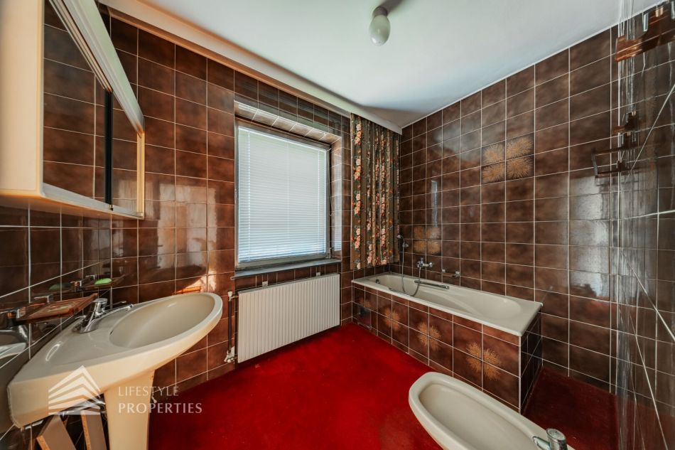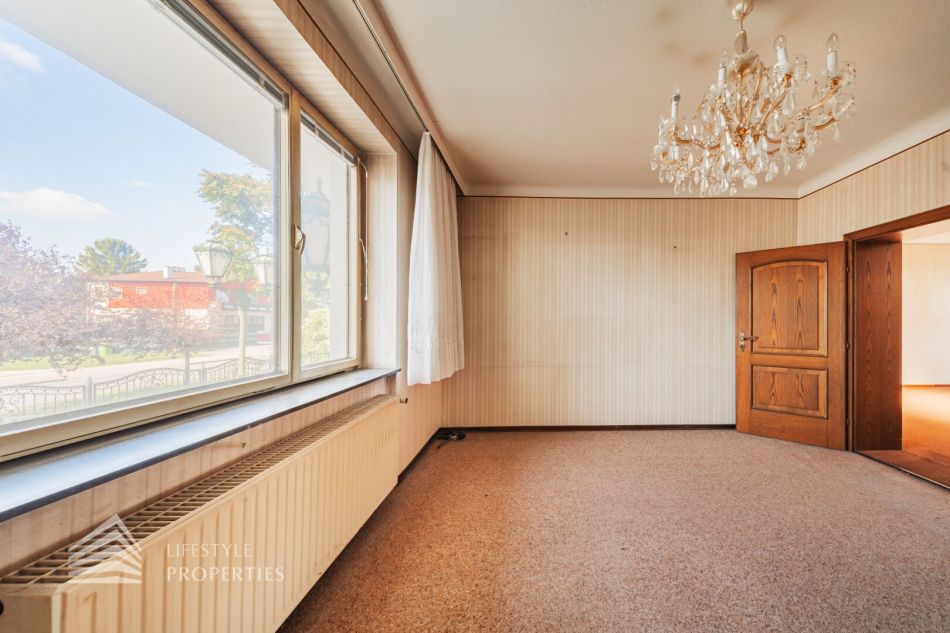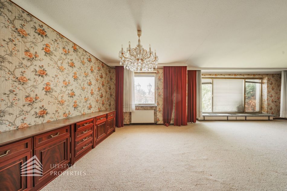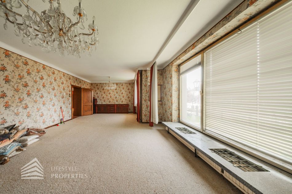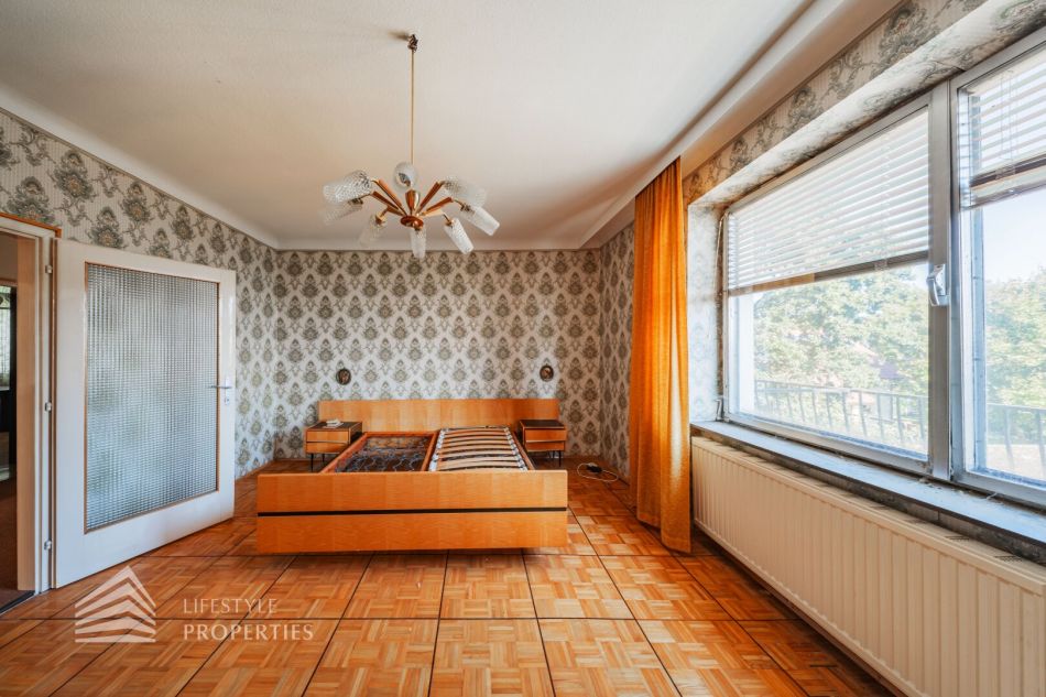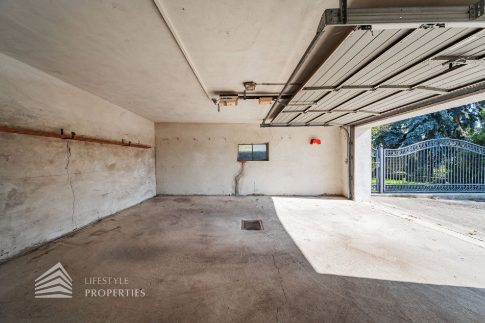 Das traumhafte Haus aus dem Jahr 1970 besticht durch seine nicht alltägliche Architektur und erstklassige Bauqualität. Schon damals ein echtes Herzeigeobjekt, präsentiert es sich dank der hochwertigen Materialien und fachgerechten Ausführung heute noch in nahezu neuwertigem Zustand. Das Grundstück umfasst ca. 1.145 m² und ist rechteckig sowie eben verlaufend. Zur Straßenseite hin ist es mit einem schmiedeeisernen Zaun eingefriedet, seitlich durch Naturzäune und Gartenmauern begrenzt. Ein Brunnen für Brauchwasser und Gartenbewässerung ist vorhanden. Die Lage ist ruhig, sonnig und von viel Grün umgeben, was für eine hervorragende Luftqualität sorgt. Zusätzlich steht ein Nebengebäude mit Garage und Lagerbereich zur Verfügung.