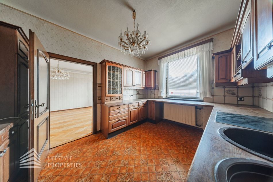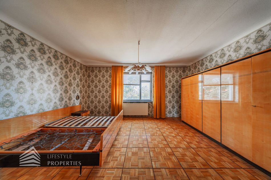 Das massiv errichtete Haus (Porotherm 38/30 cm) verfügt über eine Gesamtnutzfläche von ca. 554 m² und bietet ein großzügiges Raumangebot auf drei Ebenen, Vollkeller, Erdgeschoss, Obergeschoss, sowie einen ausbaufähigen Dachboden, welcher zusätzliches Potenzial für Wohnraum oder Stauraum bietet.