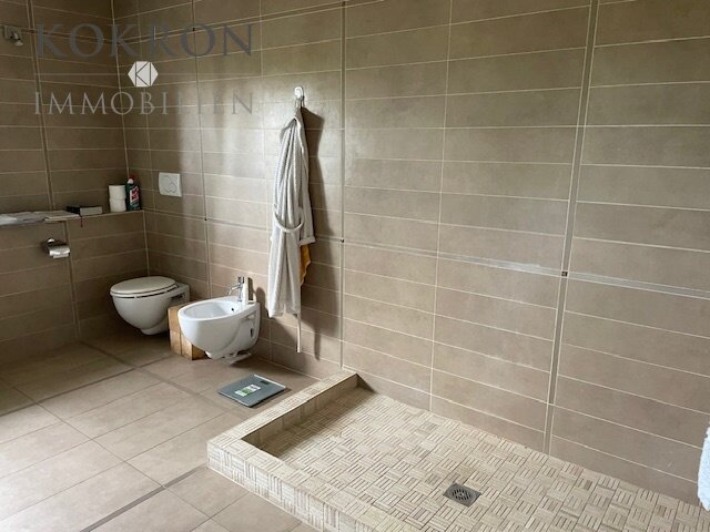 7 Toiletten/Bäder. 2 kleine und ein sehr großes autarkes Gästezimmer. Bei Umjustierung einiger Wände 6 Gästezimmer möglich.