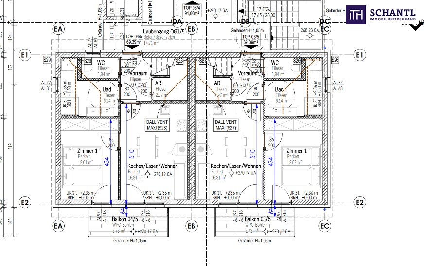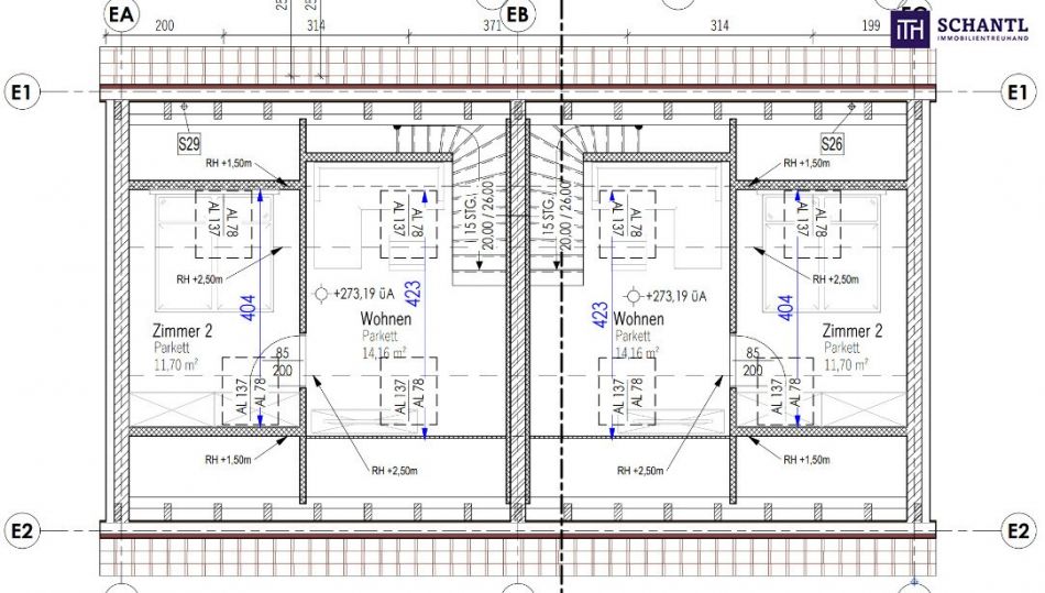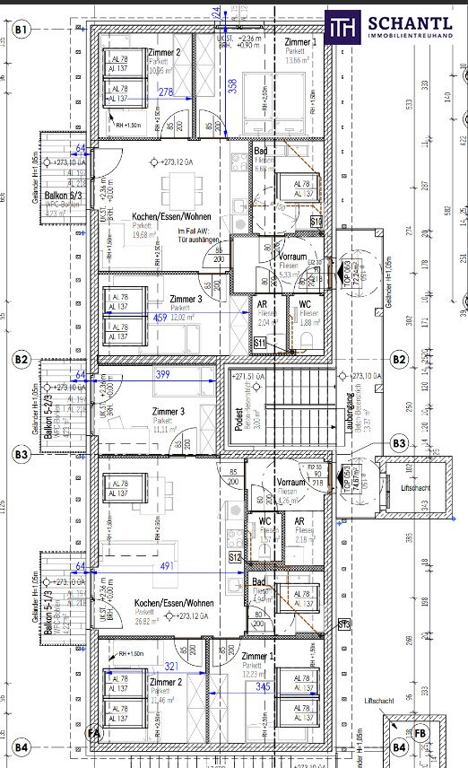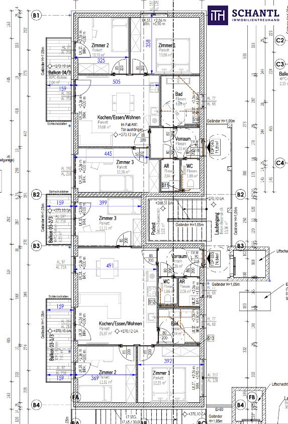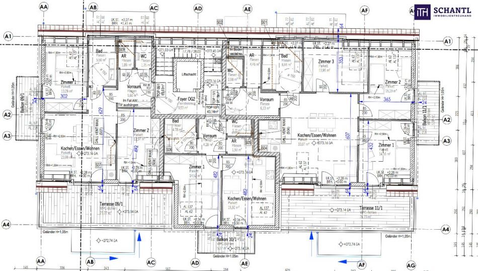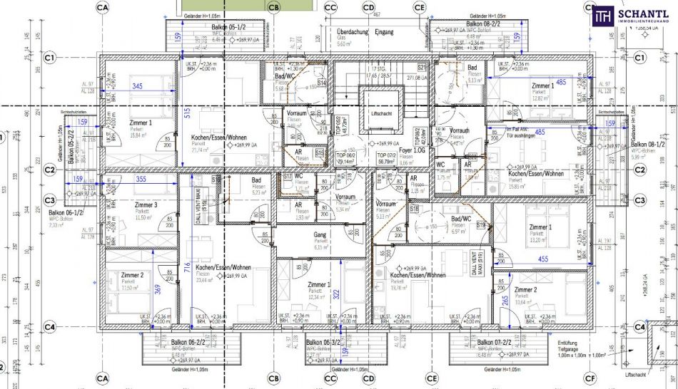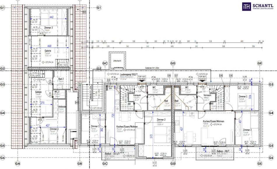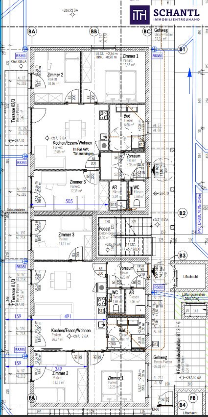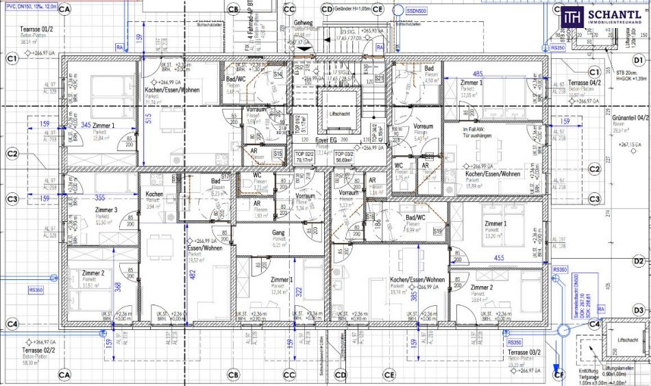 Geschoße: TG, EG , 1.OG, 2. OG & 3.OG