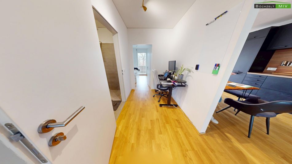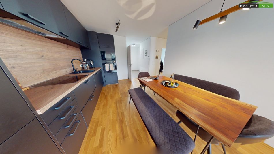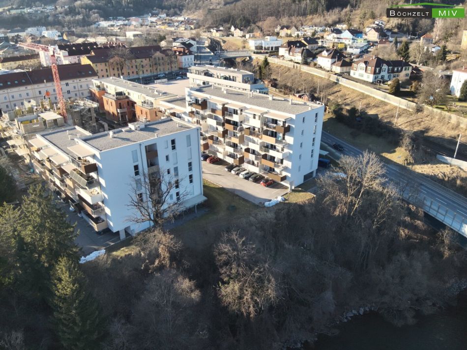 Zum Verkauf gelangt eine äußerst gepflegte und gut geschnittene Neubau-Eigentumswohnung in attraktiver Wohnlage von Leoben Judendorf, die durch ihre durchdachte Raumaufteilung, hochwertige Ausstattung und ein angenehmes Wohnumfeld überzeugt. Die Wohnung eignet sich ideal für Paare oder kleinere Familien und besticht insbesondere durch den großzügigen Wohn- und Essbereich, den sonnigen Südbalkon mit ca. 13,19 m² sowie den neuwertigen Zustand der gesamten Anlage. Besonders hervorzuheben ist der traumhafte Blick auf die Mur, der in den Ruhestunden zum Verweilen einlädt.