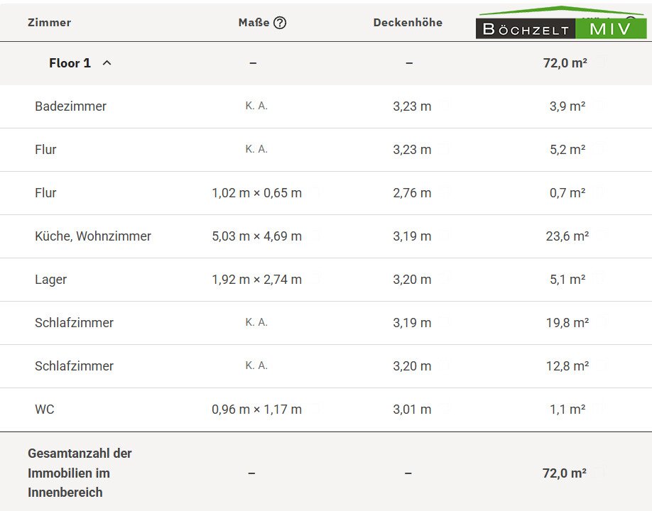 In Summe ergibt sich eine Netto-Wohnfläche von ca. 72,0 m². Die Raumaufteilung ist funktional und lässt verschiedene Nutzungskonzepte zu, etwa als großzügige 3-Zimmer-Wohnung mit großem Wohnbereich und zwei separat begehbaren Schlafzimmern. Auf der Liegenschaft befindet sich noch ein Carport sowie ein Hofgebäude welches derzeit ungenutzt. ist. Im Keller besteht ein zugeordnetes Kellerabteil.