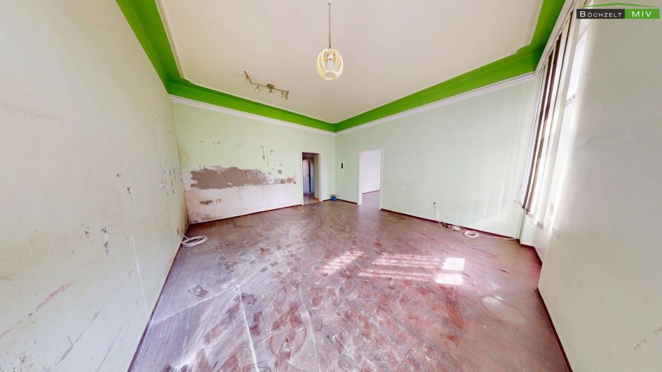 Diese Liegenschaft bietet die seltene Kombination aus einer charaktervollen, sanierungsbedürftigen Altbauwohnung in zentrumsnaher Leobener Lage und einem Mehrheitsanteil an der Gesamtliegenschaft inklusive laufender Mieteinnahmen aus einer weiteren Einheit. Die Wohnung im 1. Obergeschoss stellt mit ihren ca. 72,0 m² und hohen Räumen eine ideale Basis dar, um ein individuelles Wohnkonzept zu realisieren. Gleichzeitig tragen die derzeitigen Mieterträge von rund € 1.569,75 netto jährlich aus dem 5/8-Anteil an Top 1 zu einer kontinuierlichen Einnahmenbasis bei, wenngleich aufgrund des seit 1978 bestehenden unbefristeten Bestandsvertrags ein klassischer Altbestand mit entsprechend moderater Miethöhe vorliegt.
