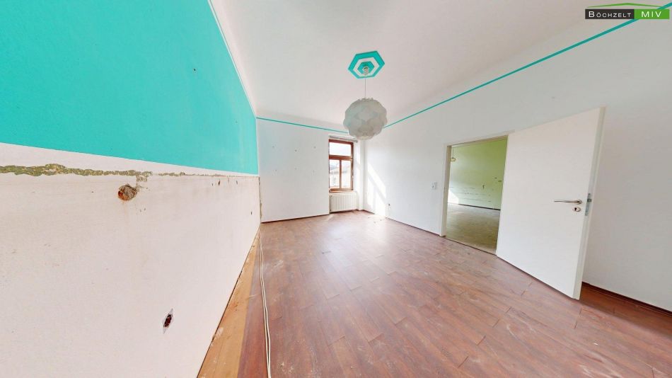 Zum Verkauf gelangt eine sanierungsbedürftige Wohnung im 1. Obergeschoss einer charmanten Stadtvilla in der Badgasse 11. Die Netto-Wohnfläche beträgt rund 72,0 m² und verteilt sich auf eine große Wohnküche, zwei Schlafzimmer sowie Nebenräume. Hohe Raumhöhen von rund 3,1 m bis 3,2 m unterstreichen den typischen Altbaucharakter und bieten viel Gestaltungspotenzial für eine ansprechende Sanierung. Die Wohnung befindet sich in einfachem, deutlich modernisierungsbedürftigem Zustand und eignet sich daher ideal für Käufer, die ihr neues Zuhause nach eigenen Vorstellungen gestalten möchten oder die Wohnung nach Sanierung als Anlageobjekt nutzen wollen. Durch die Lage im 1. Obergeschoss ist die Einheit gut erreichbar, gleichzeitig profitieren Sie von einer angenehmen Distanz zum Straßenraum.