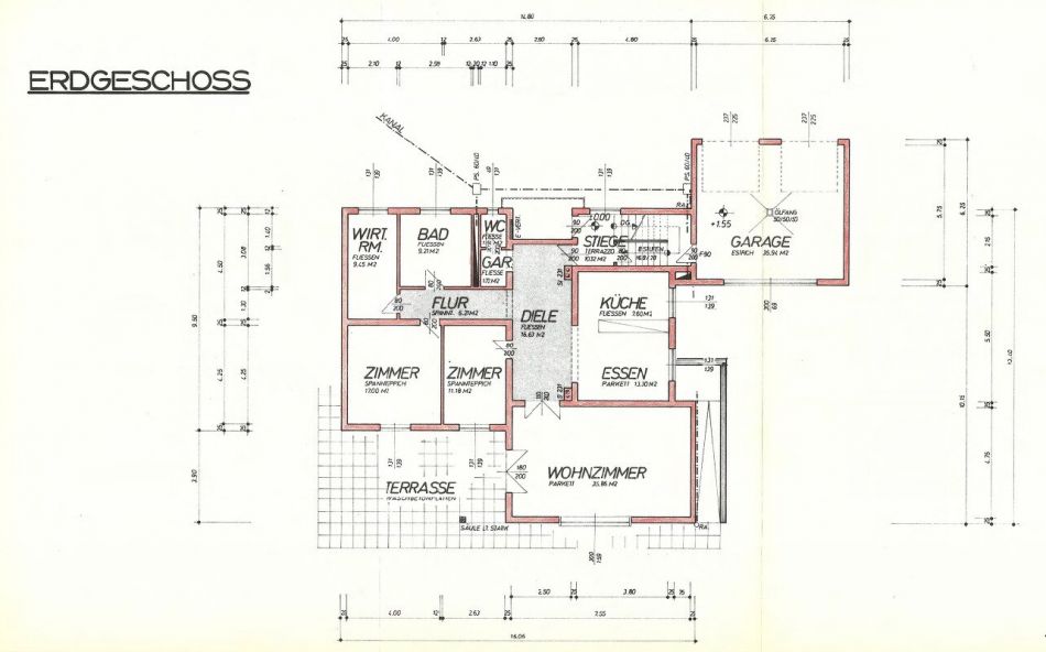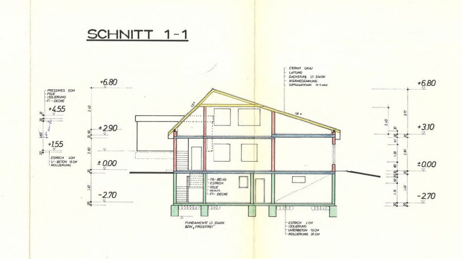 KG: Heizraum, Vorratskeller, Partyraum, Fitnessraum EG: Küche, Essbereich, Wohnzimmer, Schlafzimmer, Arbeitszimmer, Ankleidezimmer, Badezimmer, WC DG: drei weitere Zimmer, Badezimmer, WC