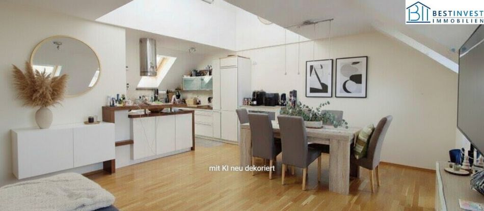 Willkommen in Ihrem neuen Zuhause – einer gepflegten 4-Zimmer-Wohnung, wie ein Penthaus im Dachgeschoss mit Lift. Barrierefreier Zugang von Garage in die Wohnung.Schon beim Betreten der Wohnung werden Sie von einem hellen und einladenden Ambiente begrüßt. Die 101 m² verteilen sich auf einen offenen Wohn-Essbereich mit Küche,