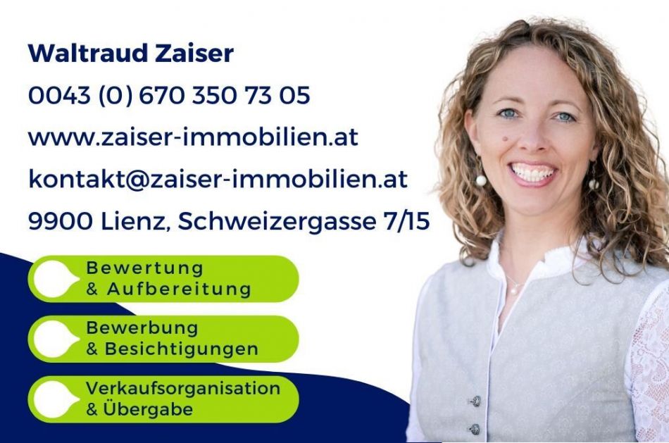 Diese Wohnung in Lienz bietet nicht nur eine gute Raumaufteilung und zweiseitige Belichtung, sondern auch die Möglichkeit, individuelle Gestaltungselemente mitzubestimmen oder auch die Fertigstellung selbst in die Hand zu nehmen und somit eine schnelle Übergabe. Übergabe bei Komplettsanierung ca. zwei Monate nach Kaufvertragsunterfertigung bzw. nach Vereinbarung.