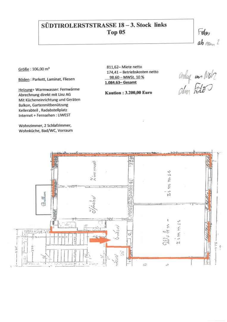 - Betriebskosten-Akonto monatl.: € 191,85 inkl. USt (exkl. Heizung, Warmwasser und Strom)