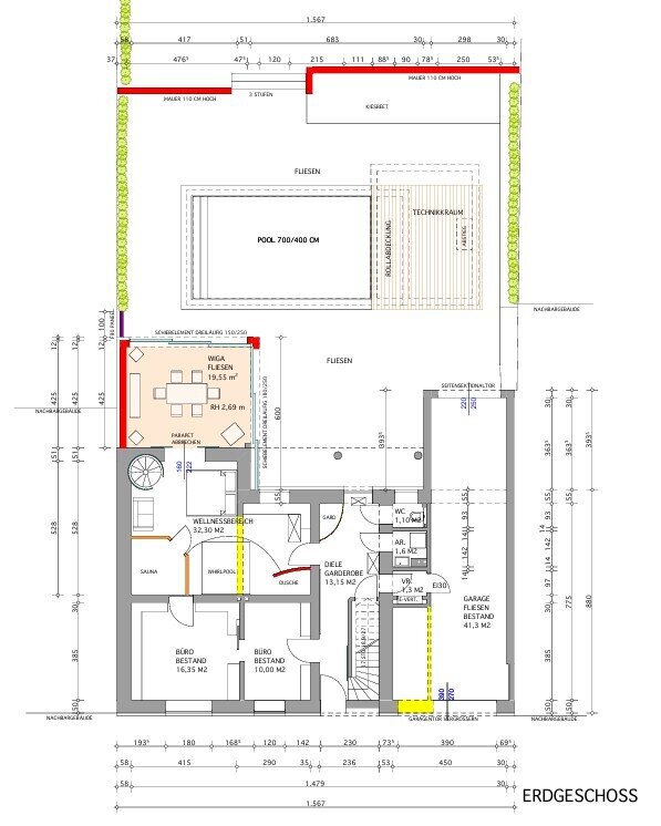 Zusätzlich stehen ein Wintergarten im Erdgeschoss (ca. 20m²) und eine Terrasse im 1. Obergeschoss (ca. 15m²) zur Verfügung.