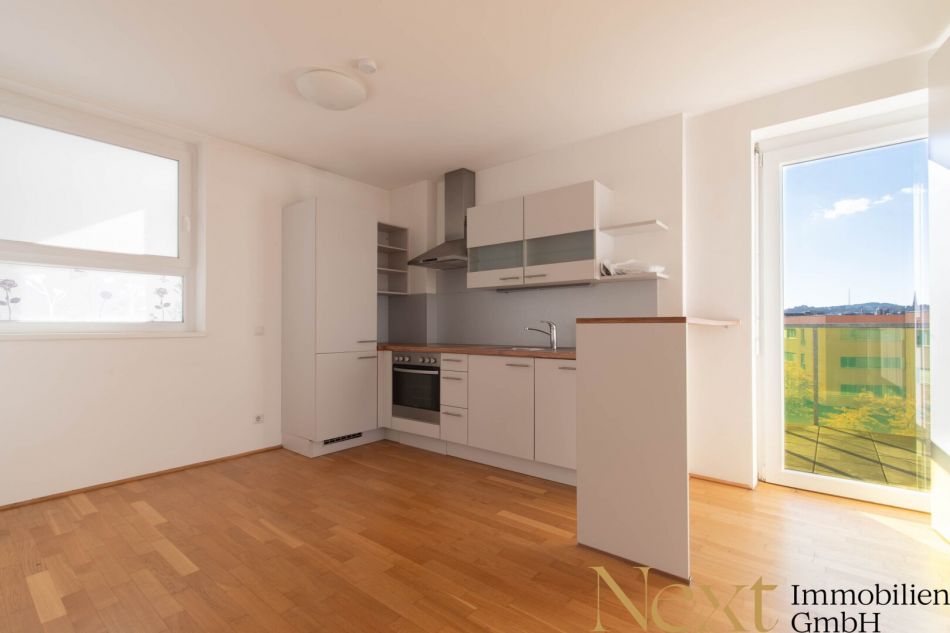 Gut aufgeteilte 2,5-Zimmer-Wohnung mit vollausgestatteter Einbauküche und sonnigem Balkon zu vermieten!Diese ca. 54,65m² große Wohnung befindet sich im 5. Obergeschoß bzw. Dachgeschoß eines zentral gelegenen Wohnhauses und punktet mit einer optimalen Raumaufteilung. Der westlich ausgerichtete, ca. 6,72m² große Balkon ist vom Essbereich samt voll ausgestatteter Einbauküche begehbar, welcher vom lichtdurchfluteten Wohnzimmer mittels Flügeltüre abtrennbar ist.