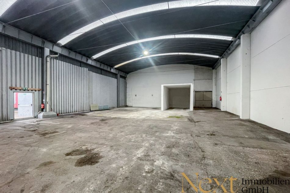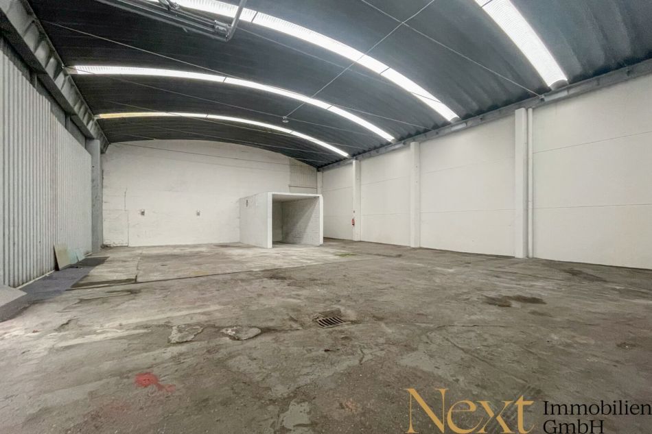 Die ca. 483m² große Kaltlagerhalle (ca. 16x30m) bietet eine vielseitig nutzbare und gut zugängliche Lagerfläche. Ein Rolltor mit ca. 3×3m sorgt für unkomplizierte Anlieferungen und ermöglicht auch größeren Fahrzeugen ein einfaches Einfahren. Durch Belichtungsflächen über dem Tor sowie an der Decke verfügt die Halle über ausreichend natürliches Licht. Allgemeine Sanitäranlagen stehen im Gebäude zur Verfügung, und Strom kann nach Absprache bereitgestellt werden.