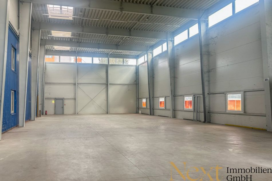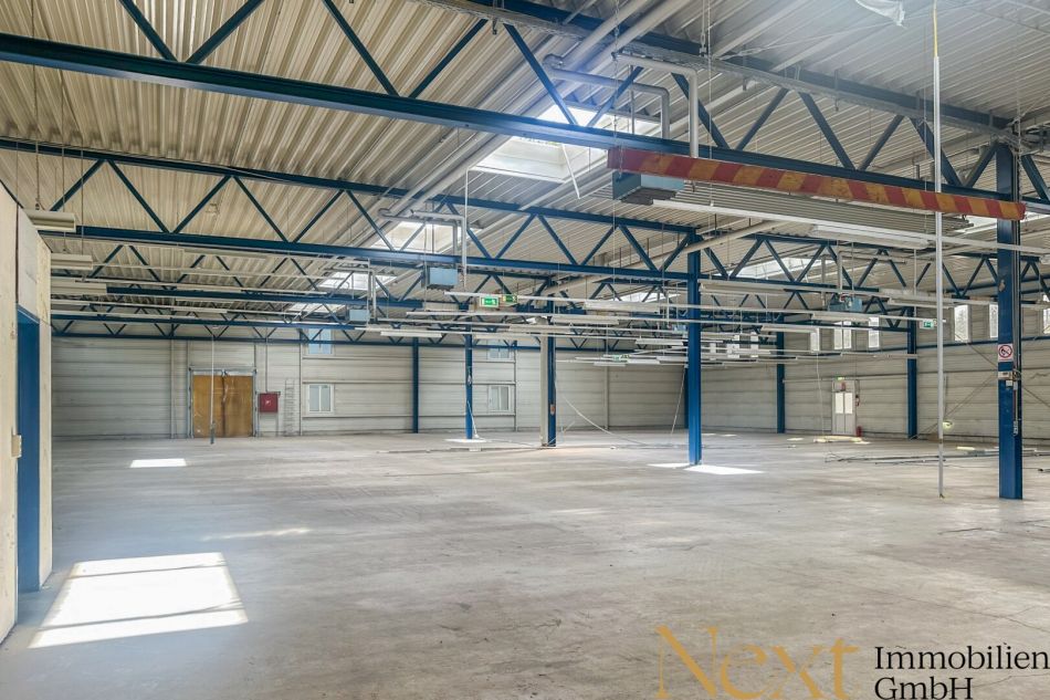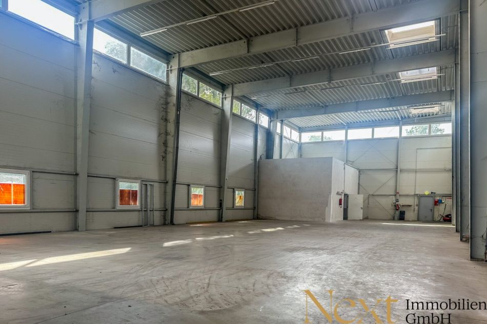 Die Lagerhalle verfügt außerdem über eine LKW-Anpassrampe (Tor: 2,80 x 2,80m), zwei ebenerdige Rolltore (bis zu 2,96m Höhe) und großzügige Rangiermöglichkeiten.