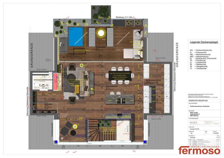 Die überdachte Dachterrasse kombiniert mit dem Balkon. Ein Platz, der Sie jeden Tag aufs Neue verzaubert – mit einem Stadtblick, der tief geht. Ein Ort, an dem die Zeit langsamer läuft und jeder Sonnenuntergang wie ein eigenes Kunstwerk wirkt.