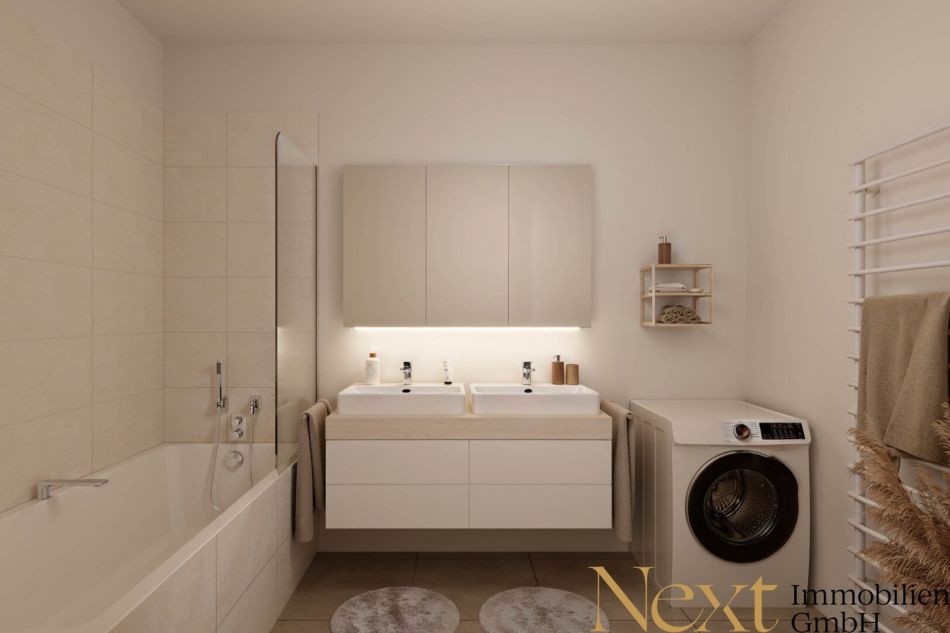 - Badezimmer inkl. Badewanne, Waschbecken, Waschmaschinenanschluss und Handtuchheizkörper
