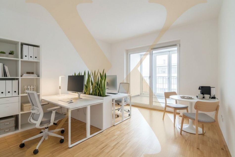 Sie verfügt über ein großzügiges Büro mit integrierter Küche, ein weiteres Büro, ein Badezimmer, eine Toilette, einen Abstellraum sowie eine ca. 7,50m² große Loggia.