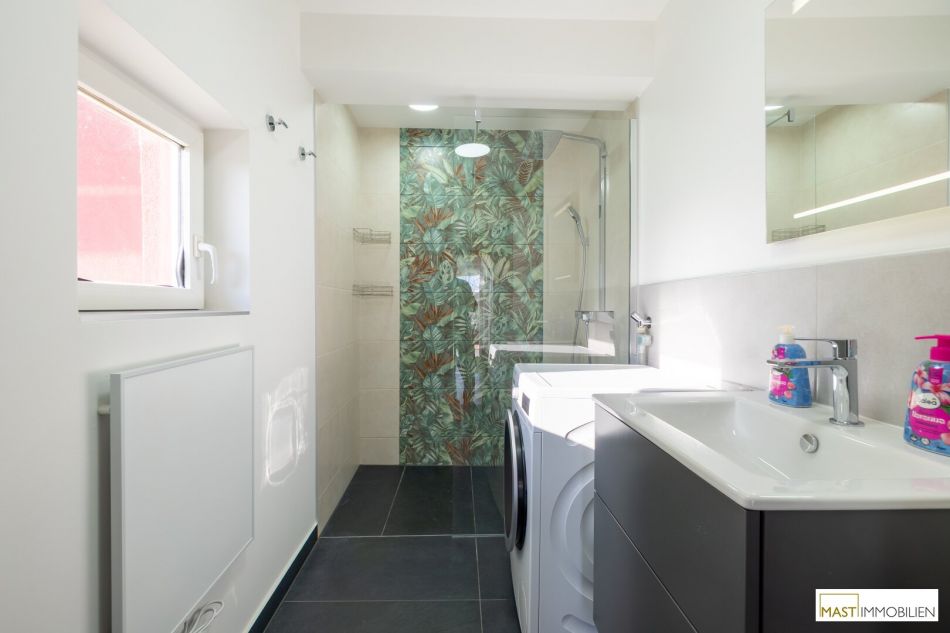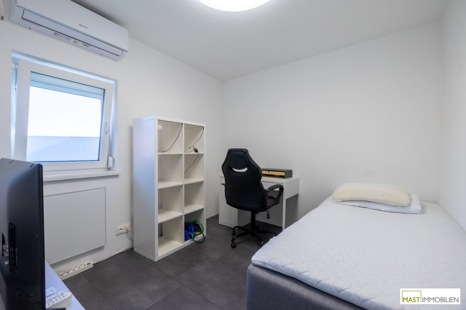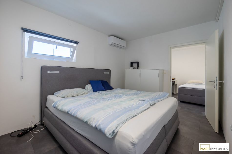 Für zeitgemäßen Wohnkomfort sorgt die Kombination aus Infrarotheizungen sowie einer Klimaanlage, die sowohl für angenehme Wärme in den Wintermonaten als auch für Kühlung an heißen Sommertagen gewährleistet.
