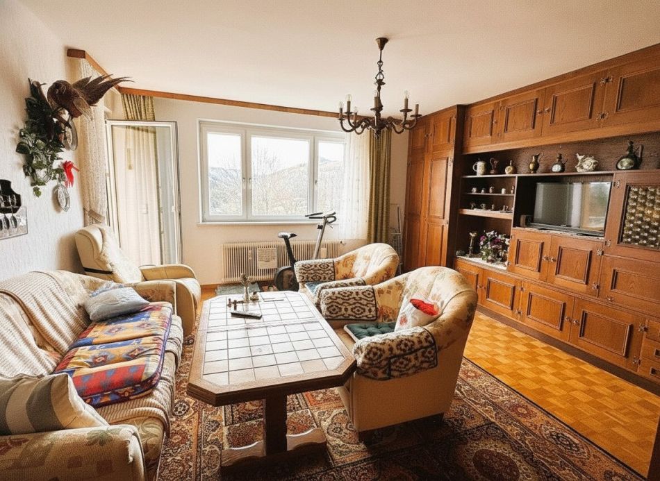 Ich freue mich, Ihnen diese 3-Zimmer-Eigentumswohnung mit 77,78 m² Wohnfläche inklusive einer südwestseitigen, sonnigen Loggia mit 5,18 m2 und einer Garagenbox zum Verkauf anzubieten. Die Wohnung mit ihrem guten Grundriss, eignet sich ideal für einen 2-Personen-Haushalt oder eine Kleinfamilie - die hellen, sonnigen Räume, die Sonnenloggia mit traumhaften Ausblick auf die Basilika Mariazells und dem Blick auf die imposante Bergkulisse, laden hier zum Entspannen und Genießen ein. Die Wohnung ist etwas in die Jahre gekommen und muss zum Teil saniert werden. Es besteht jedoch ein großes Potential, daraus ein wunderschönes Zuhause zu schaffen. Aktuell ist sie voll möbliert und sofort beziehbar – auf Wunsch kann sie jedoch auch teilweise unmöbliert übernommen werden.