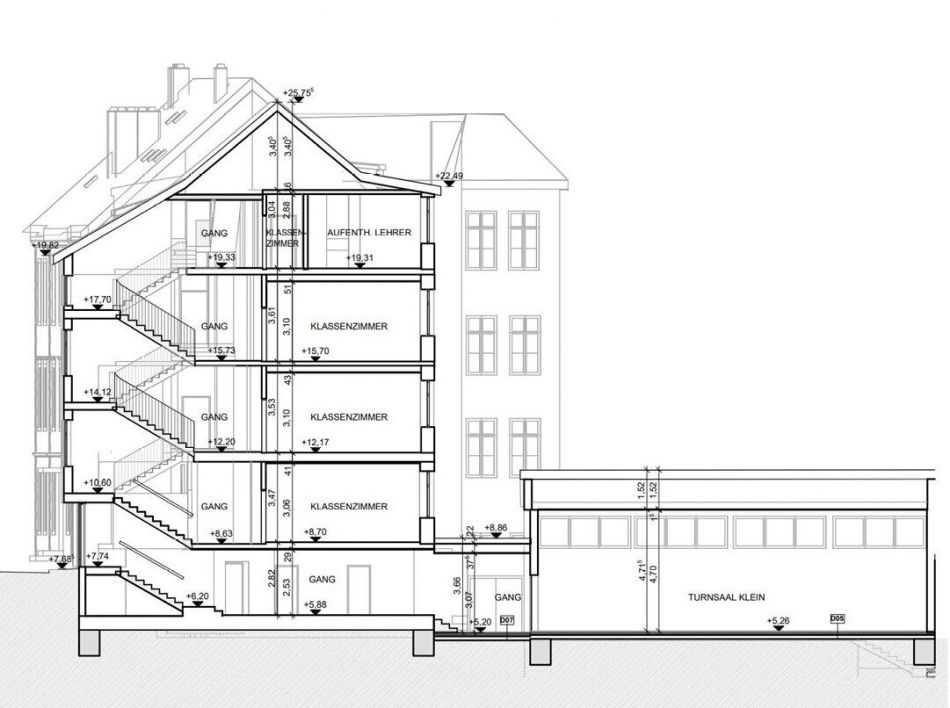 - mehrere Klassenzimmer, Verwaltungsräume, Turnsaal sowie zusätzliche Nutzflächen