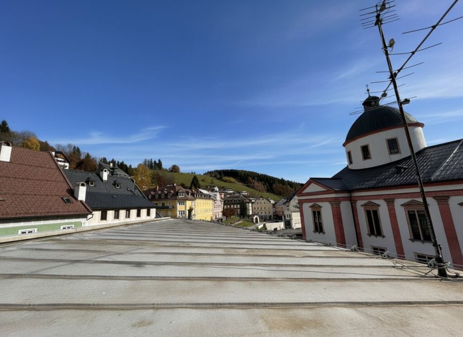 Entkernter Zustand erlaubt auch hier eine flexible Planung für eine großzügige Dachwohnung mit Panoramablick auf Basilika, Stadtzentrum Mariazells, Berglandschaft