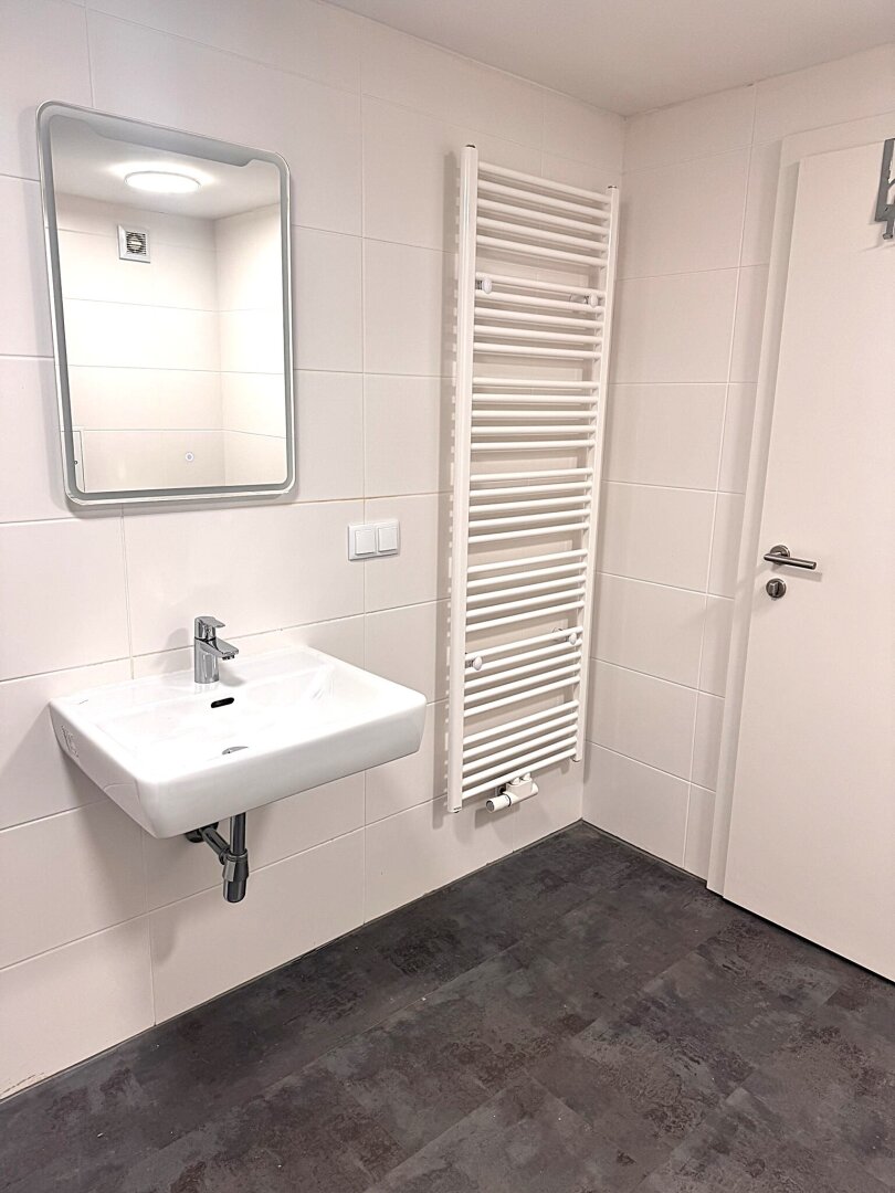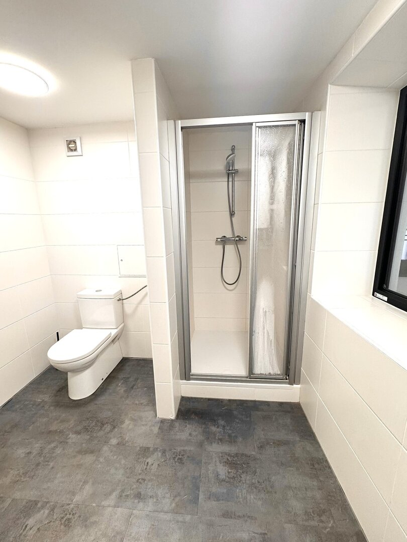 Großes Duschbad mit Toilette und Waschmaschinen-Anschluss