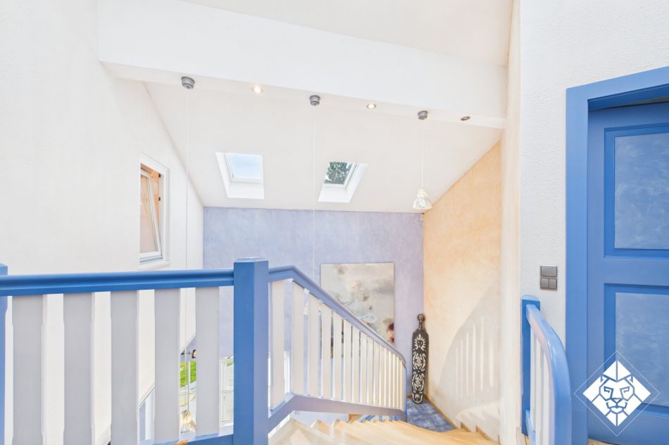 Der Masterbereich mit eigener Ankleide und Bad en suite bildet einen komfortablen Rückzugsort mit viel Privatsphäre. Weitere Schlafzimmer verteilen sich auf mehrere Ebenen und bieten flexible Nutzungsmöglichkeiten. Mehrere Bäder, WCs und Abstellräume sorgen für Struktur und Alltagstauglichkeit. Die Raumaufteilung eignet sich ideal für individuelle Wohnkonzepte und gehobene Ansprüche.