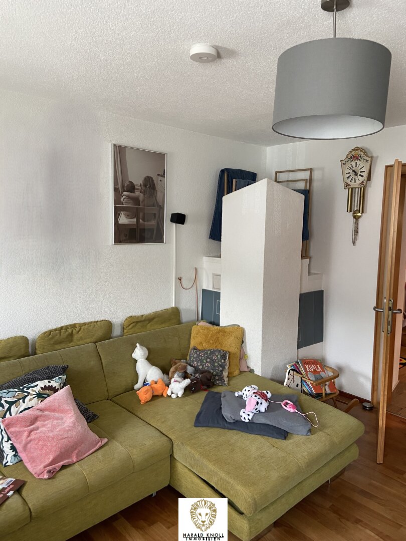 helles und freundliches nach Süden ausgerichtetes Wohnzimmer das viel Tageslicht hereinlässt. Ein Kachelofen sorgt für wohlige Wärme in der kalten Jahreszeit - Schlafen und / oder Heim-Arbeit:
