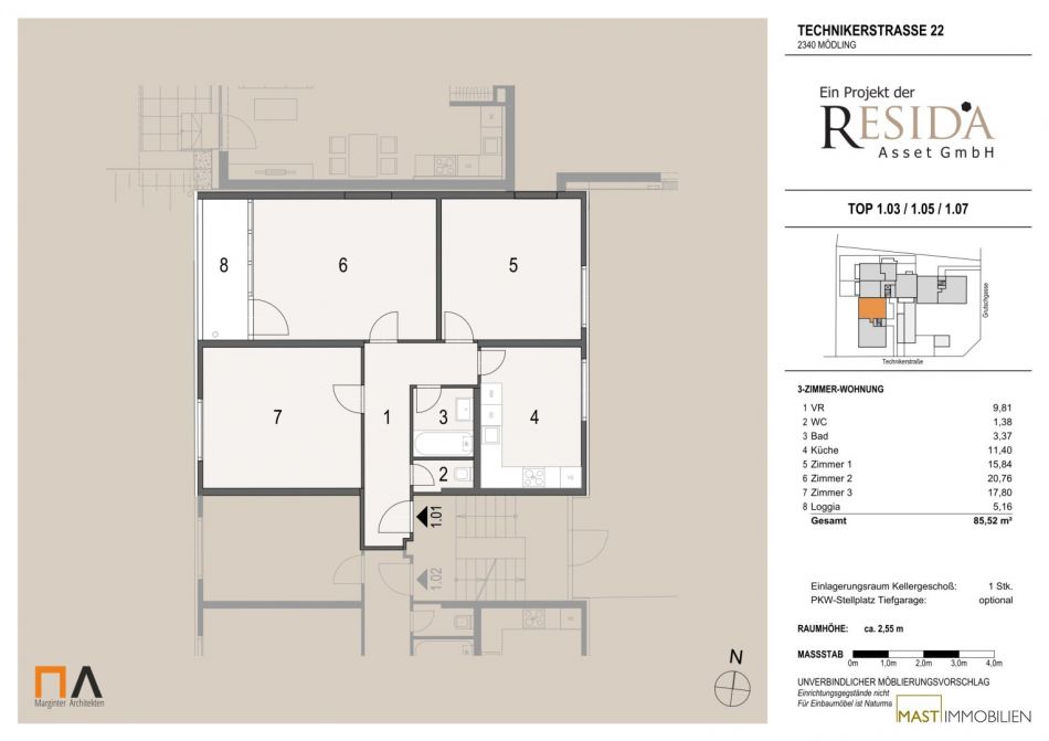 Zum Verkauf steht die Wohnung Top 3 in der Stiege 1 verfügt über 80,36 m² Wohnfläche + eine 5,16 m² große Loggia.