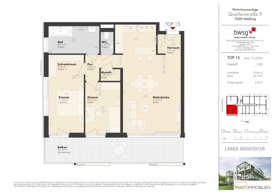 Dieses Projekt vereint hochwertige Architektur mit nachhaltigem Bauen und einem Wohngefühl, das keine Wünsche offen lässt. Eine ideale Investition – für heute und für die Zukunft.Details Wohnung Top 15:
