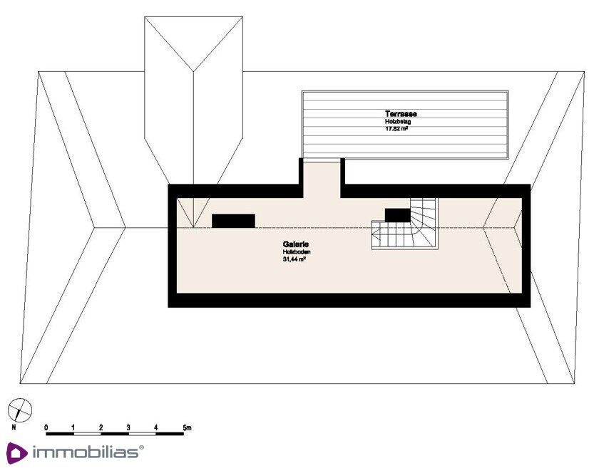 Loftartiger Raum, ca 31,44 m², mit Ausstieg auf die hofseitige Südterrasse mit Fernblick, ca 17,82 m²