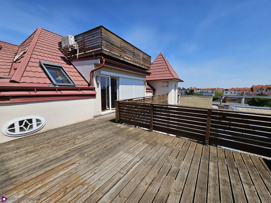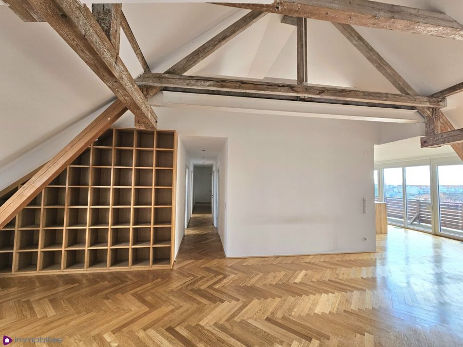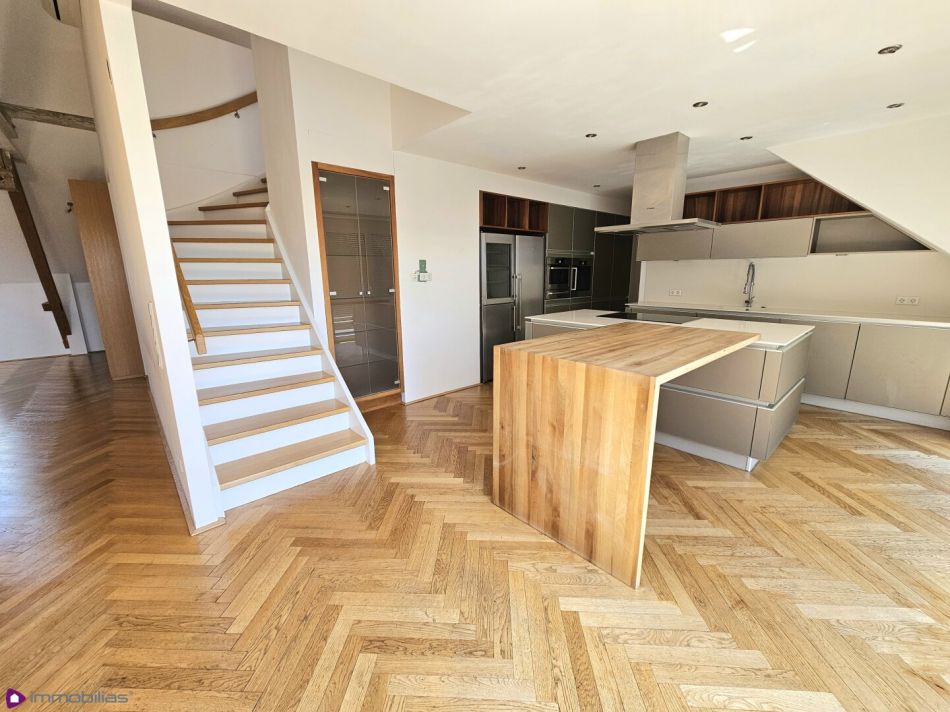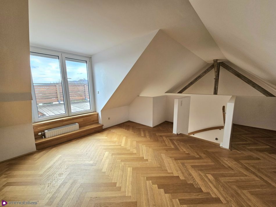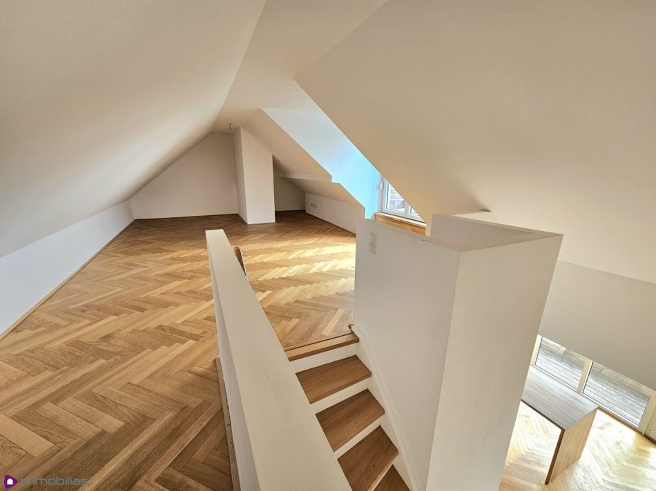 Die gegenständliche XXL Terrassenwohnung erstreckt sich über zwei Wohnebenen (Maisonette) und befindet sich im 2. Stock (kein Lift vorhanden, nicht barrierefrei) eines sehr gepflegten Stilhauses mit denkmalgeschützter Fassade aus 1900. Die Liegenschaft besteht aus nur 5 Wohnungen. Das Gebäude wurde 2012 generalsaniert und zeitgleich das Dachgeschoss ausgebaut- es entstand dieses exklusive Objekt, welches sich über das gesamte Dachgeschoss erstreckt. .